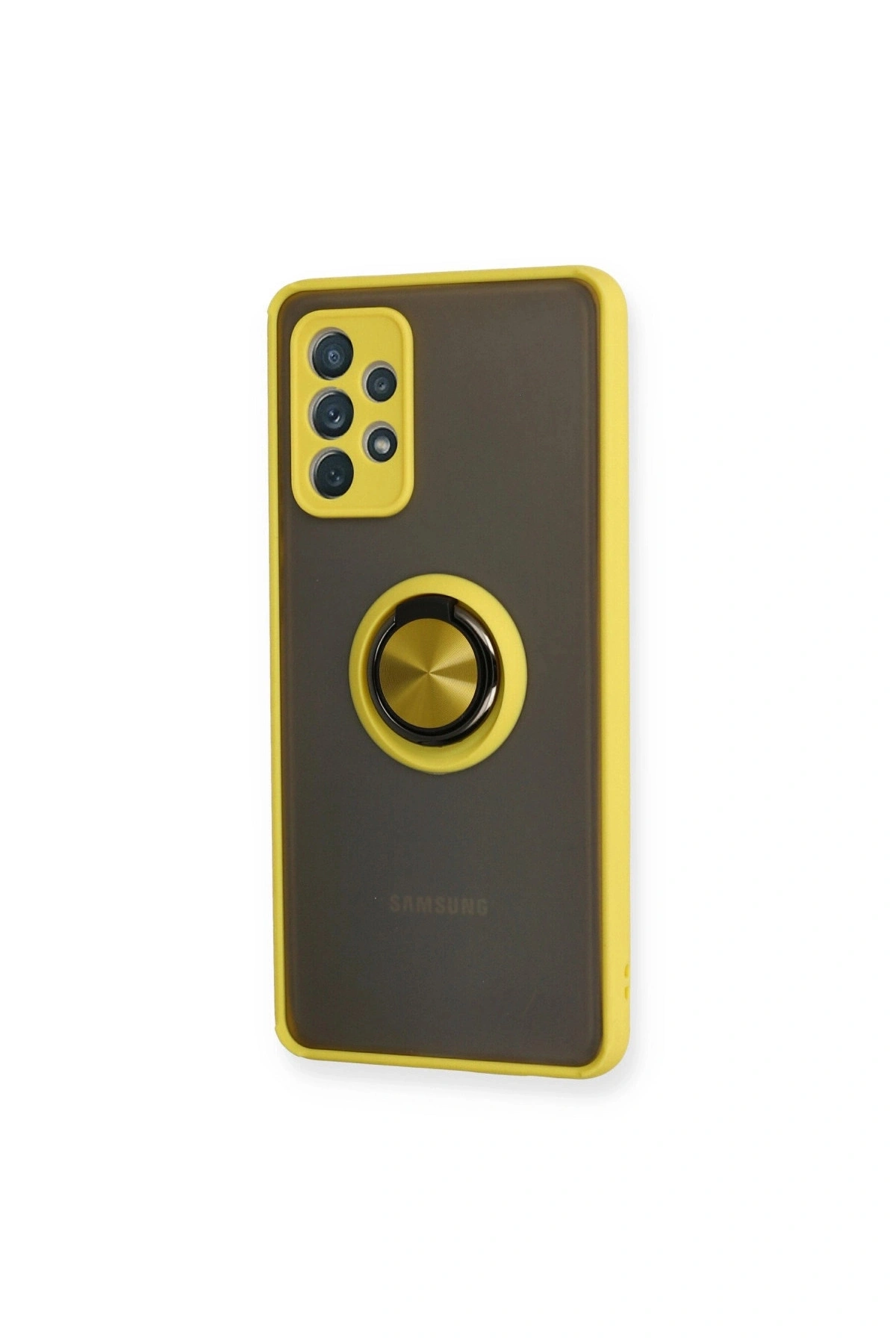 Samsung Galaxy A72 Kılıf Montreal Yüzüklü Silikon Kapak - Sarı