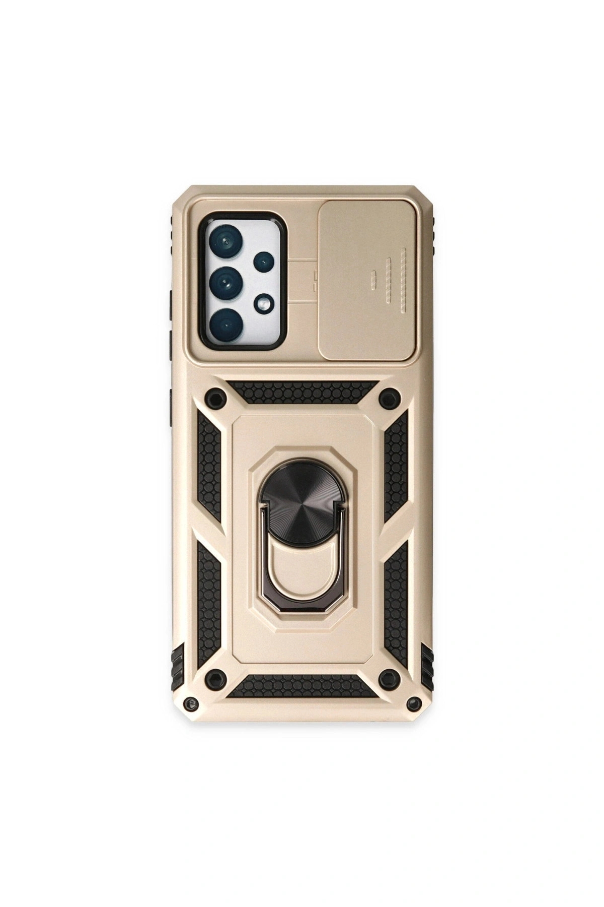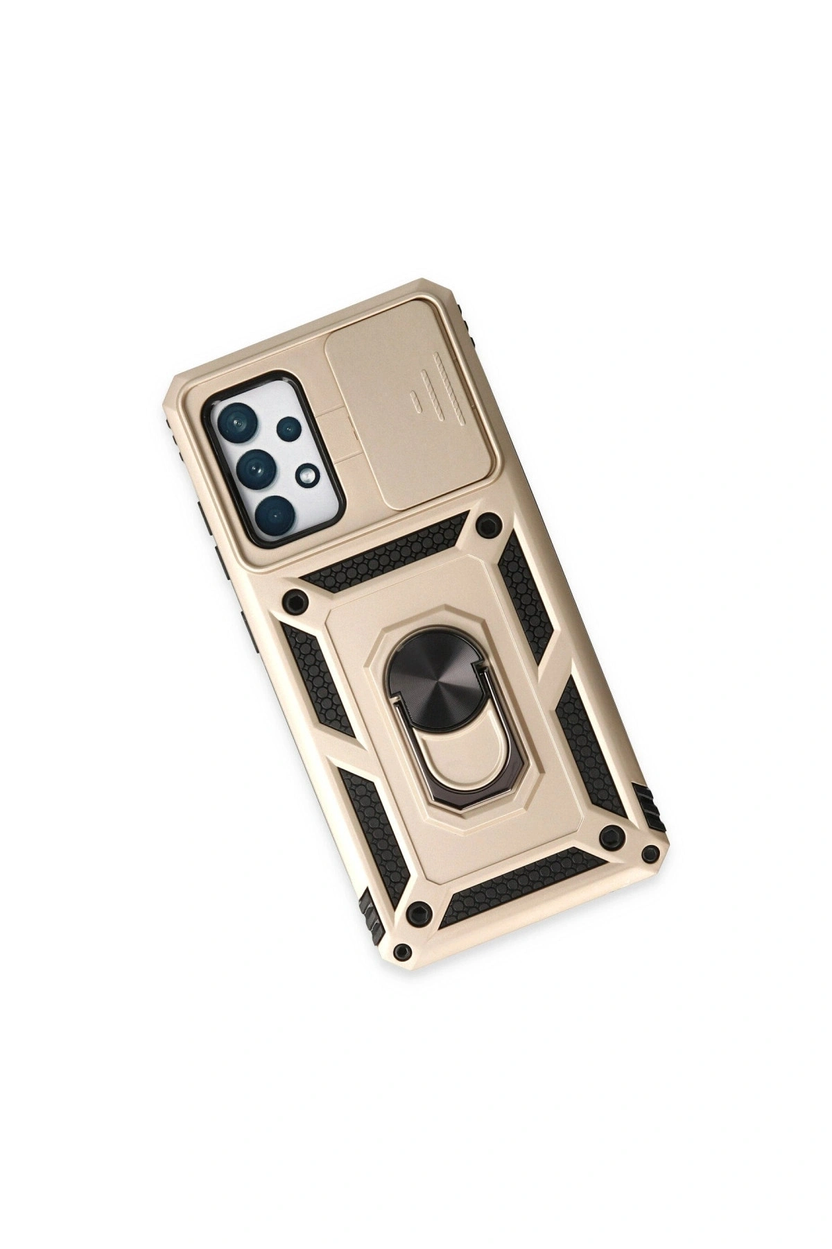 Samsung Galaxy A72 Kılıf Pars Lens Yüzüklü Silikon - Gold