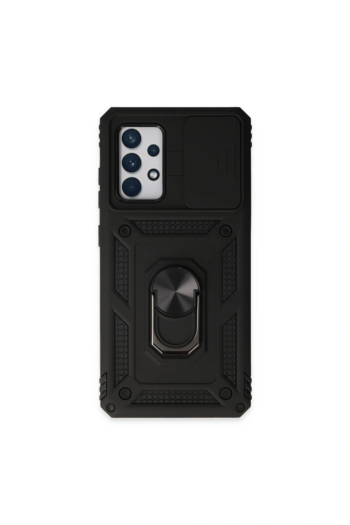 Samsung Galaxy A72 Kılıf Pars Lens Yüzüklü Silikon - Siyah