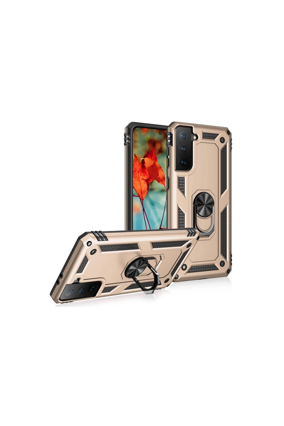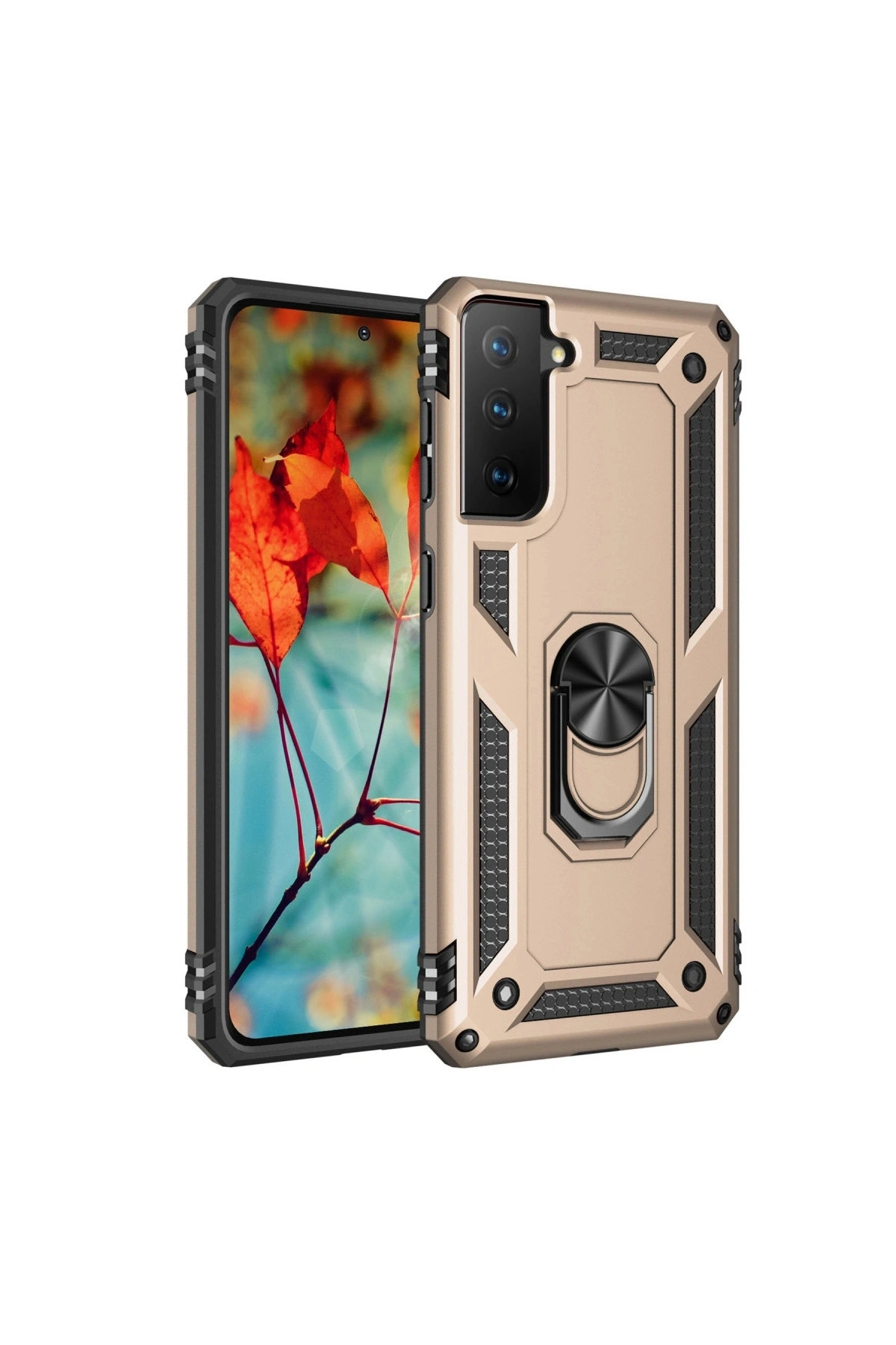 Samsung Galaxy S21 Kılıf Sofya Yüzüklü Silikon Kapak - Gold
