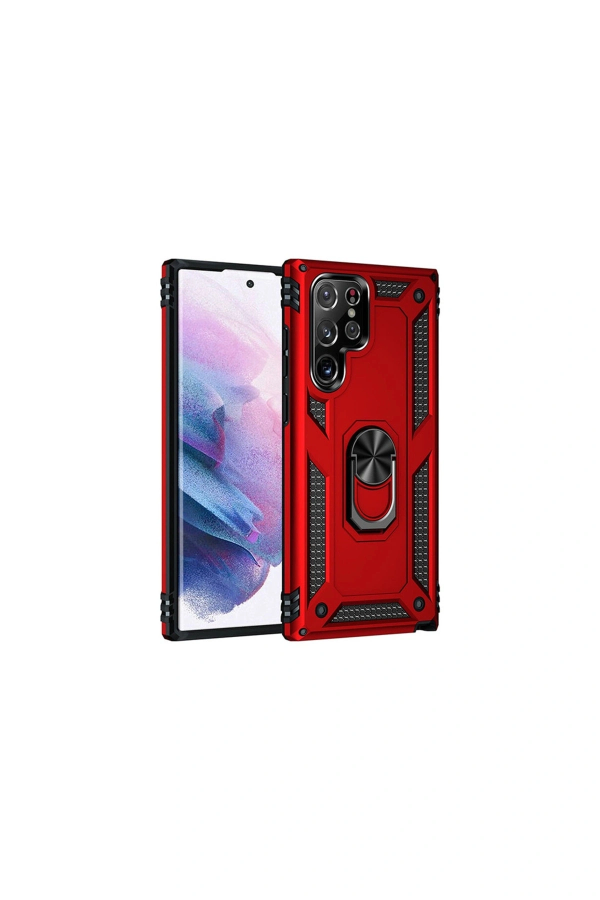 Samsung Galaxy S21 Ultra Kılıf Sofya Yüzüklü Silikon Kapak - Kırmızı