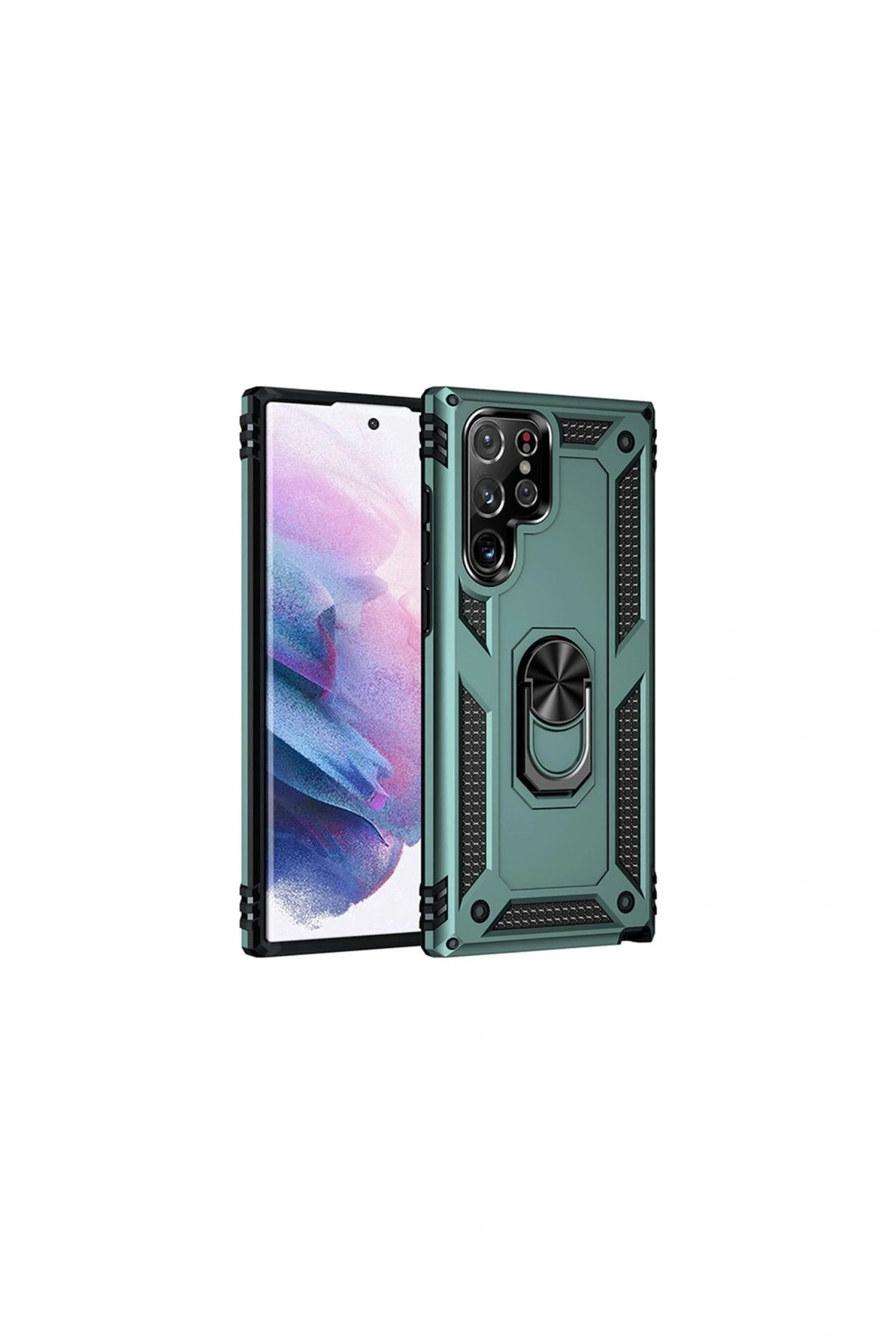 Samsung Galaxy S21 Ultra Kılıf Sofya Yüzüklü Silikon Kapak - Yeşil