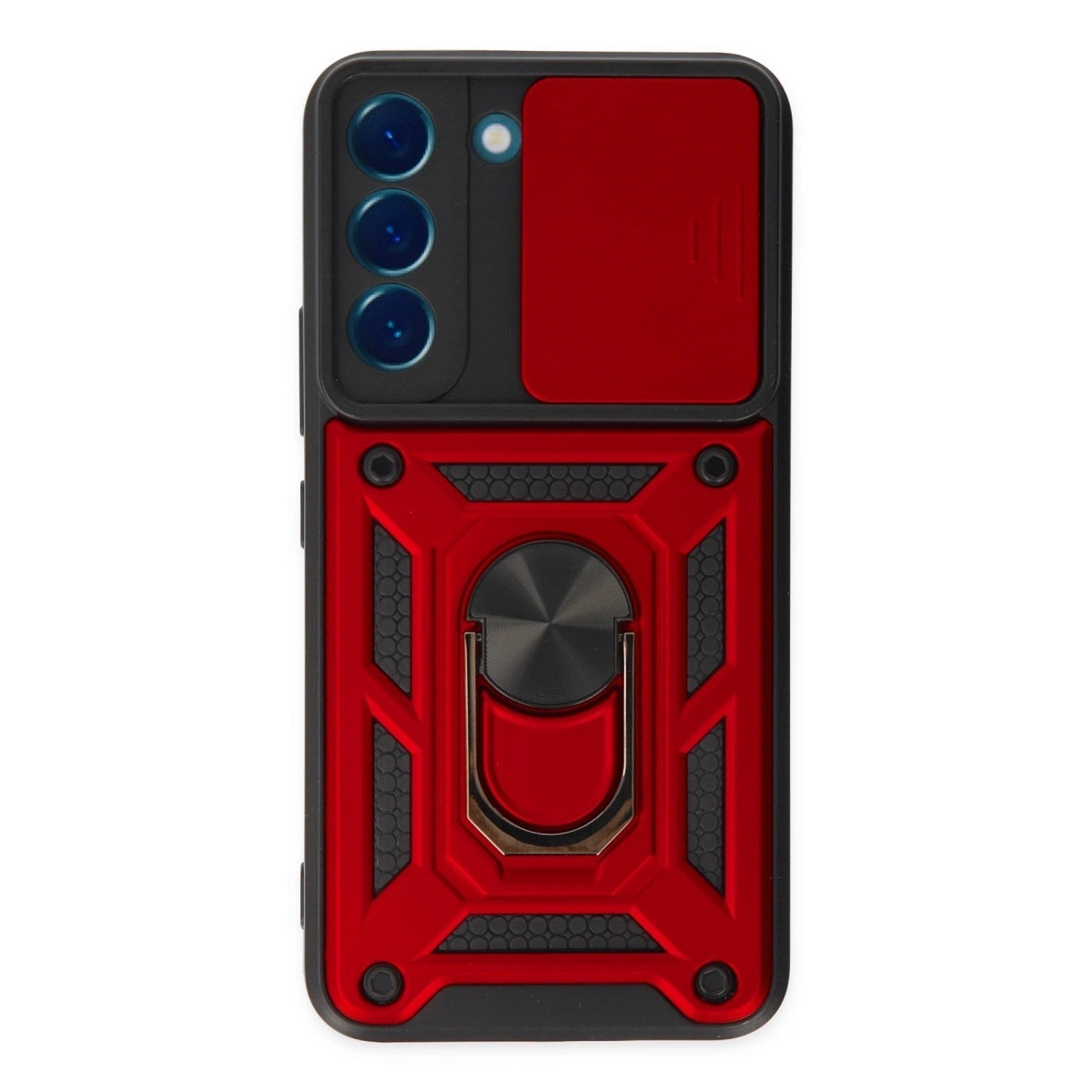 Samsung Galaxy S22 Kılıf Pars Lens Yüzüklü Silikon - Kırmızı