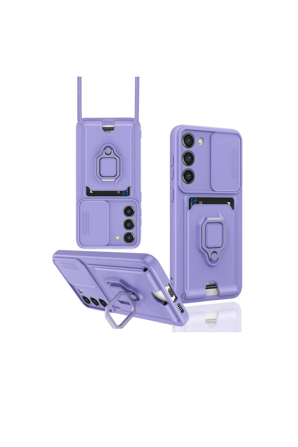 Samsung Galaxy S23 Plus Kılıf Zuma Kartvizitli Yüzüklü Silikon - Lila