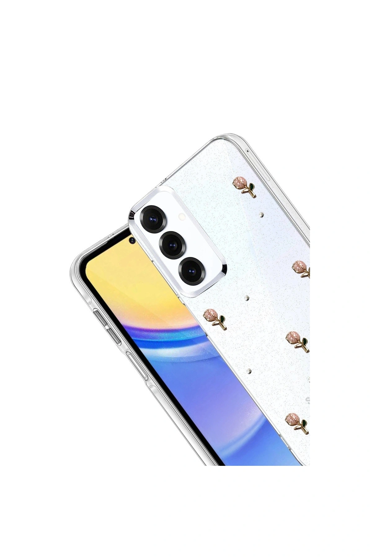 Fiyonk Desenli Kapak ✅ Zarafet ve Koruma Bir AradaFiyonk, yıldız, kelebek, lale, çiçek, kalp ve gül gibi zarif detaylarla süslenmiş bu kapak simli, şeffaf tasarımıyla estetik ve korumayı bir araya getiriyor.; Telefonunuzu yalnızca dış etkenlerden korumakla kalmaz, aynı zamanda ona göz alıcı bir stil kazandırır.; Günlük kullanımda dikkat çeken tasarımı sayesinde cihazınızın şıklığı öne çıkar.; ✅ Üstün Darbe KorumasıEsnek kenar yapısı ve dayanıklı malzemesiyle telefonunuzu darbelerden ve düşmelerden etkili bir şekilde korur.; Simli şeffaf yüzey, hem sağlamlık hem de görselliği bir arada sunarak cihazınızın görünümünü sergilemeye devam eder.; ✅ Konforlu ve Pratik Kullanımİnce ve hafif tasarımıyla telefonunuzu kalınlaştırmadan yüksek koruma sağlar.; Tüm tuşlar, bağlantı noktaları ve kamera çıkıntılarıyla tam uyumludur.; Kaymaz yüzeyi sayesinde elde daha güvenli bir tutuş sunar böylece günlük kullanımda rahatlık ve konfor sağlar.