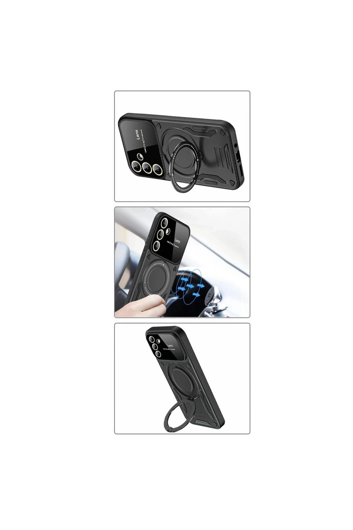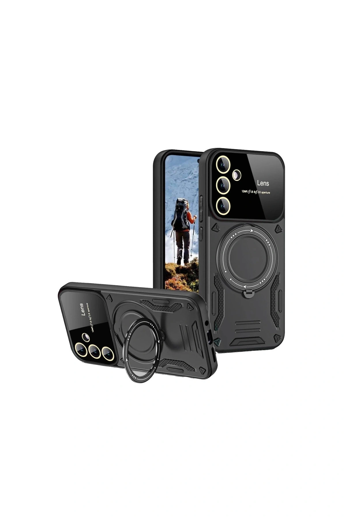 Samsung Galaxy S24 Fe Kılıf Joy Lens Standlı Kapak - Siyah