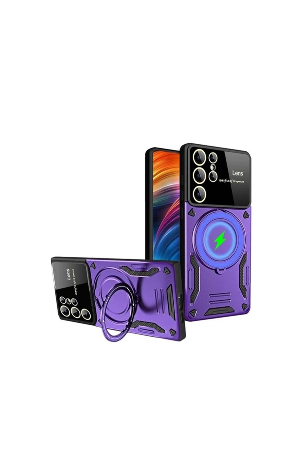 Samsung Galaxy S24 Ultra Kılıf Joy Lens Standlı Kapak - Mor