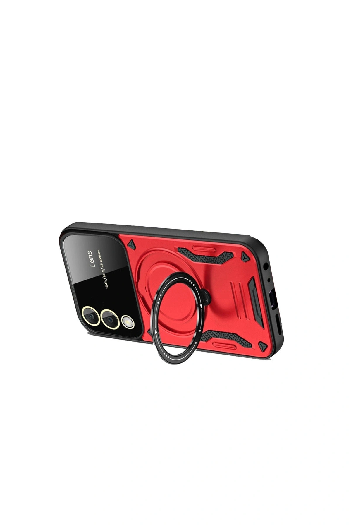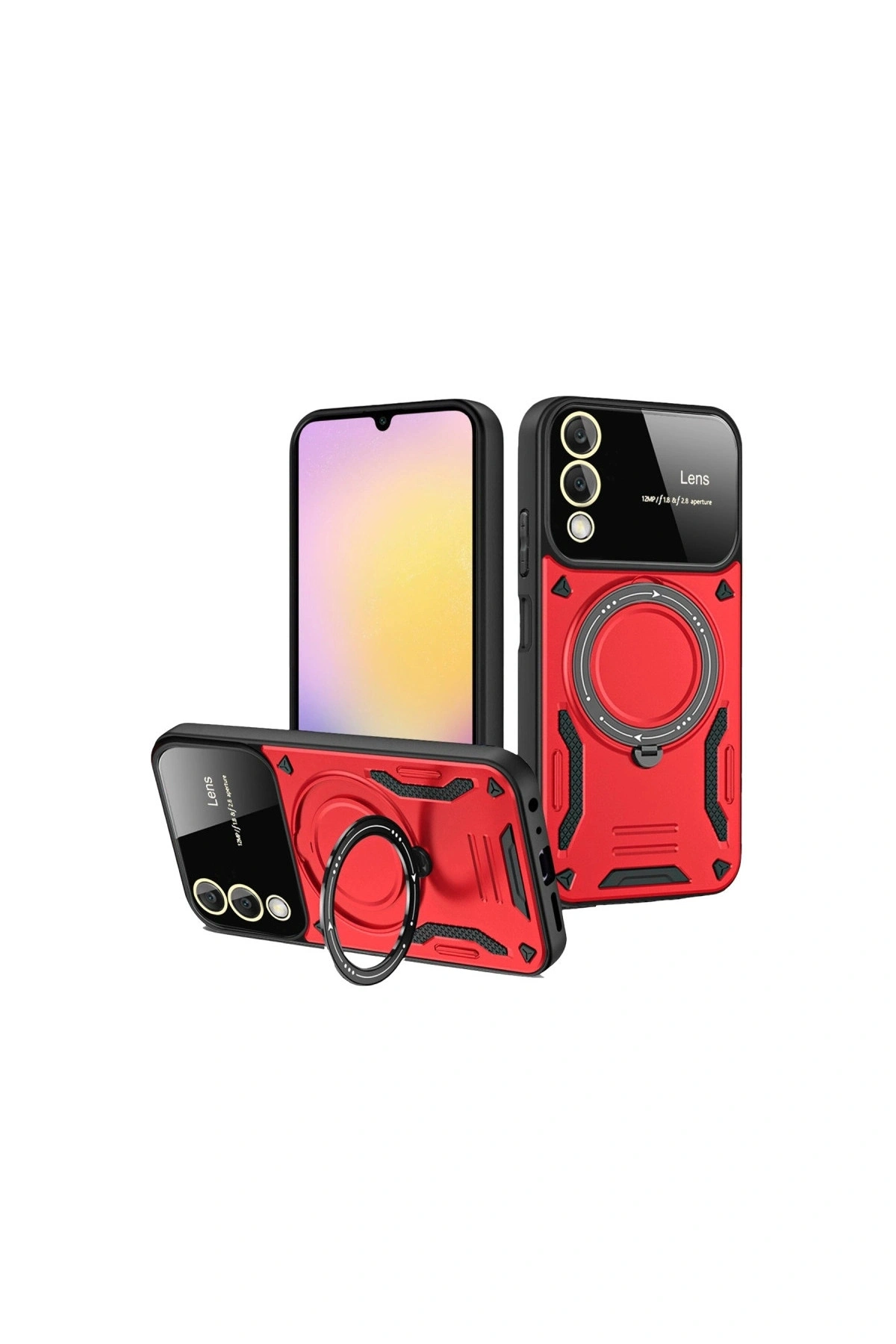Samsung Galaxy S25 Edge Kılıf Joy Lens Standlı Kapak - Kırmızı