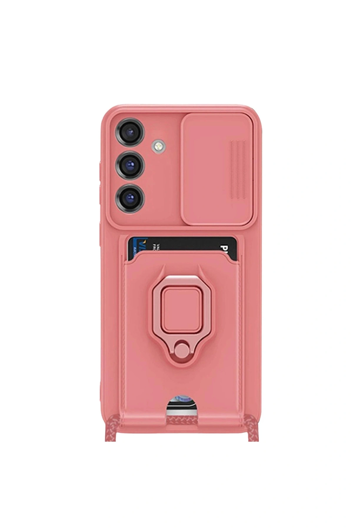 Zuma Kartvizitli Yüzüklü Silikon KılıfKart Bölmeli | Kamera Korumalı | Stand Yüzük Destekli | Soft TPU Tasarım✅ Entegre Kart Bölmesi – Pratik Taşıma Arka kısmında yer alan özel kart haznesi, kredi kartı, kimlik, ehliyet gibi günlük kullanımda gerekli kartları güvenli şekilde taşımanızı sağlar.; Kaymayı ve düşmeyi önleyen yapısı sayesinde kartlarınız her zaman güvende kalır.; ✅ Metal Yüzük Tasarımı – Stand ve Araç İçi Kullanım Kılıfın arkasında yer alan sağlam metal yüzük, cihazınızı video izleme moduna geçirmek için stand işlevi sunar.; Ayrıca manyetik araç tutucularla da uyumlu olup, sürüş esnasında eller serbest kullanım sağlar.; ✅ Kaydırmalı Kamera Lens Koruması Zuma serisine özel geliştirilen kaydırmalı lens kapağı, cihazınızın kamerasını çizik, toz ve dış etkenlere karşı tamamen korur.; İhtiyaç anında kolayca açılır ve kendiliğinden kilitlenir yapıdadır.; ✅ Omuz Askısı Uyumu – Taşıma Konforu Kılıfın alt kısmındaki özel delik tasarımı sayesinde dilediğinizde omuz askısı takarak telefonunuzu çanta gibi taşıyabilirsiniz.; Bu özellik özellikle hareket halinde pratiklik ve güvenlik sunar.; ✅ Premium Mat Yüzey – Parmak İzi ve Leke Tutmaz Mat yüzeyli silikon malzeme, hem şık görünüm hem de yüksek konfor sunar.; Kaymaz yapısı sayesinde elde kolay kavranır, yüzey lekelere karşı dirençlidir ve kolayca temizlenebilir.; ✅ Yükseltilmiş Kenarlar ile Ekran ve Kamera Koruması Cihazın ekranı ve kamera çevresini saran hafif yükseltilmiş kenar yapısı, yüzeye temas sırasında çizilmelere karşı ekstra koruma sağlar.; ✅ Yumuşak ve Sağlıklı TPU Malzeme Esnek yapısı sayesinde cihazınıza tam uyum sağlar.; Hassas çalışan buton geçişleri ile kontrolü kolaylaştırır.; Sağlığa zararlı herhangi bir materyal içermez.; ✅ Canlı Renk Seçenekleri – Kişisel Tarzınızı Yansıtın Pastel tonlarda tasarlanan Zuma serisi, yumuşak dokuya sahip renkli kenarları ve zarif yüzey tasarımıyla hem şıklık hem fonksiyonellik sunar.