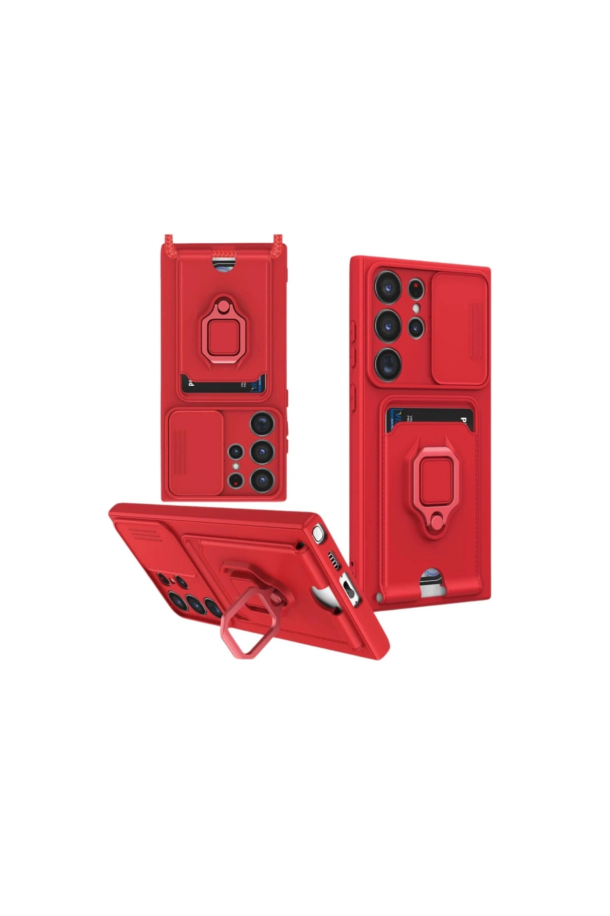 Samsung Galaxy S25 Ultra Kılıf Zuma Kartvizitli Yüzüklü Silikon - Kırmızı