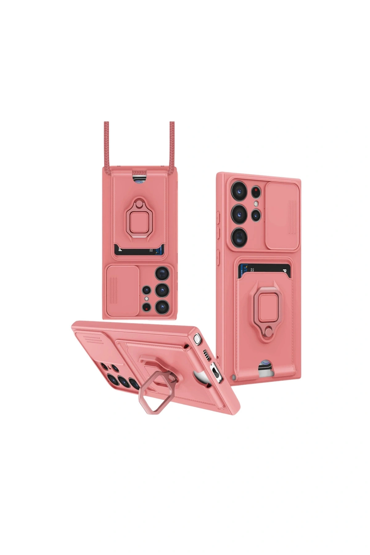Samsung Galaxy S25 Ultra Kılıf Zuma Kartvizitli Yüzüklü Silikon - Pembe