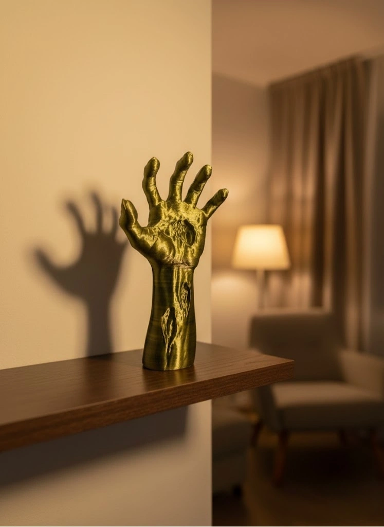 Bu fantastik tasarımlı el heykeli, 22×7 cm boyutlarıyla hem kompakt hem de etkileyici bir dekoratif figür olarak öne çıkar. Ürünün yüzeyindeki damar detayları, parmak kıvrımları ve doğal dokular, heykelin 3 boyutlu etkisini artırır. Özel renk geçişlerine sahip altın–yeşil yüzeyi, ürüne hem modern hem de mistik bir görünüm kazandırmaktadır. El figürü; şans, enerji, yeni başlangıçlar ve yaratıcı güç anlamını taşır. Bu nedenle çalışma masasına, ofis köşesine veya kitaplık rafına yerleştirildiğinde güçlü bir sembolik etki oluşturur. Ürün özellikle fantastik dekor, gotik tarz, modern minimalizm veya konsept tasarım sevenler için ideal bir objedir. Dayanıklı yapısı, uzun süre şekil değiştirmeden kullanılmasına olanak sağlar. Gösterişli görünümü sayesinde hem erkek hem kadın dekor tutkunlarına hediye olarak tercih edilebilir. Koleksiyoncular, sanat severler, fantastik film ve oyun temalı dekorasyon yapanlar için eşsiz bir tamamlayıcı parçadır.
