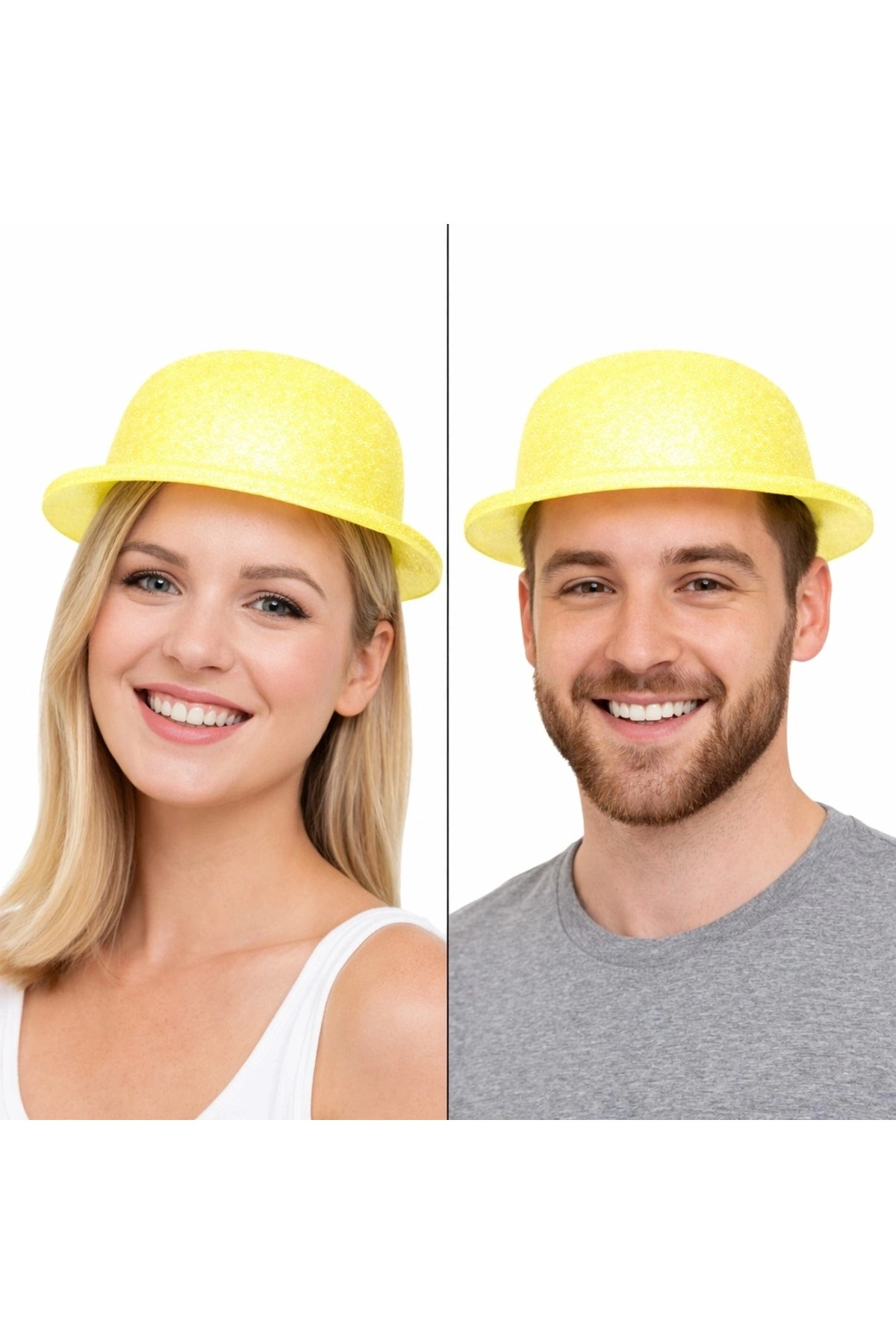 Simli sarı renk melon şapka, canlı rengi ve parlak glitter kaplamasıyla enerjik ve dikkat çekici bir görünüm sunar.; İnce plastik malzemeden üretilmiştir, hafif yapısı sayesinde uzun süreli kullanımlarda rahatsız etmez.; Yetişkin boy ölçüsüne uygun olan bu şapkadoğum günü partilerikarnaval ve kostüm etkinlikleribekarlığa veda organizasyonlarıfotoğraf çekimleri ve sahne konseptleriiçin ideal bir parti aksesuarıdır.; Parlak sarı rengi sayesinde özellikle ışık altında öne çıkar ve eğlenceli kombinlerin tamamlayıcısı olur.; Ürün Özellikleri Renk: Simli Sarı Malzeme: İnce plastik, glitter kaplama Beden: Yetişkin Kullanım Alanı: Parti, kostüm, karnaval, organizasyon Satış Şekli: 1