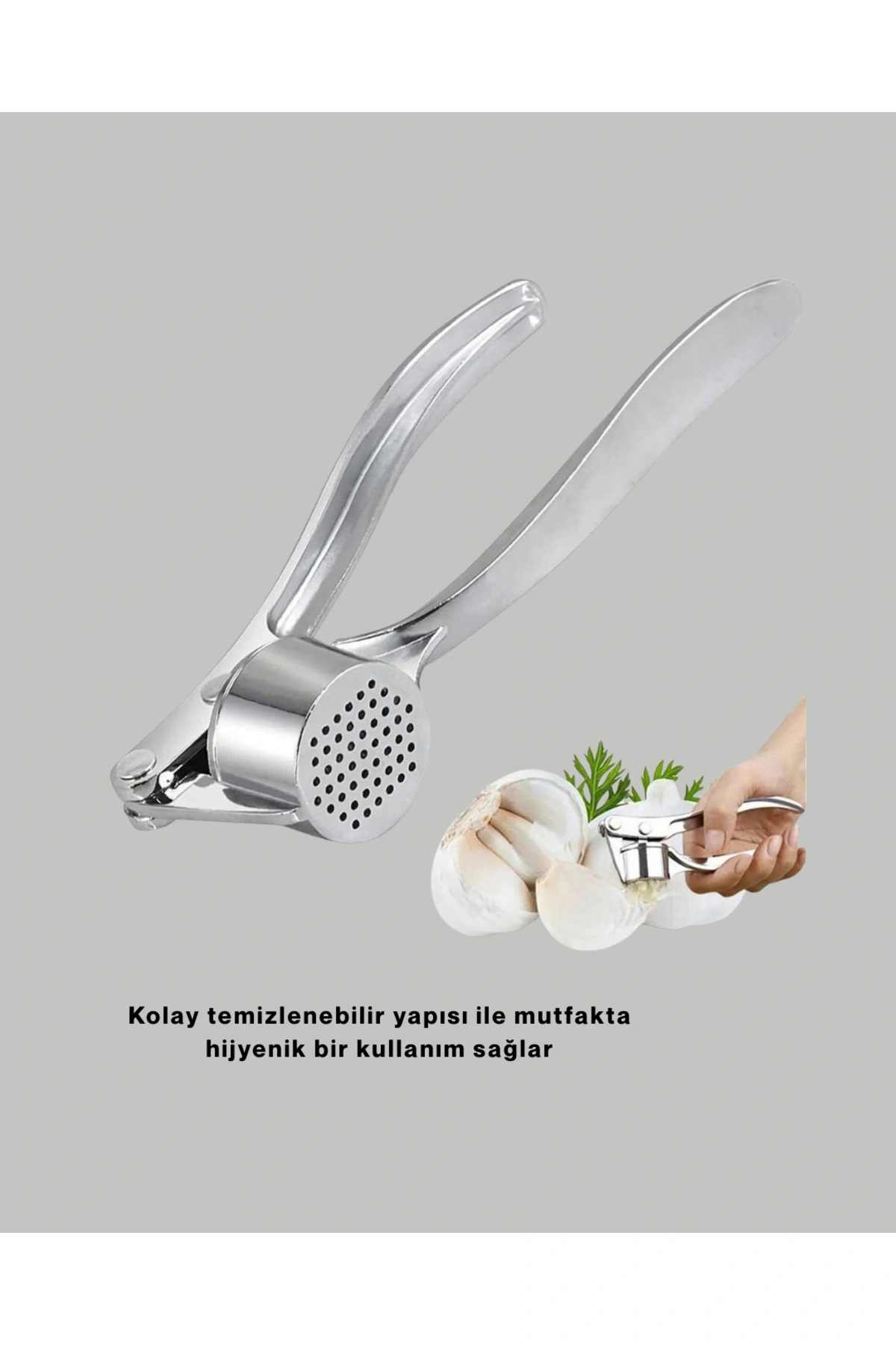 Bu sarımsak ezici, tamamen dayanıklı metal gövdeden üretilmiş olup yoğun mutfak kullanımına mükemmel şekilde uyum sağlar.; Sap kısımlarındaki ergonomik kıvrım yapısı, tutuşu güçlendirirken baskıyı eşit dağıtarak daha kolay sıkma imkânı sunar.; Metal yüzey darbelere, çizilmelere ve aşınmalara karşı oldukça dirençlidir.; Günlük kullanımda bile ilk günkü sağlamlığını korur.; Sarımsak ezmede en büyük sorunlardan biri zayıf mekanizmadır.; Bu ürünün döner mekanizması güçlendirilmiş olup minimum eforla maksimum verim sağlar.; Sarımsağı tane tane parçalamak yerine tamamen püre hâline getirerek yemeklerin daha homojen bir tat ve kıvam kazanmasını sağlar.; Özellikle soslar, salata sosları, kızartmalar ve et marinasyonlarında mükemmel sonuç verir.; Hijyen açısından da avantajlıdır.; Metal yapısı bakteri tutmaz ve sarımsak kokusunun kalıcı olmasını engeller.; Yıkaması son derece kolaydır; ister elde ister bulaşık deterjanıyla anında temizlenebilir.; Ayrıca kullanırken sarımsak elinize temas etmediği için hoş olmayan kokular da oluşmaz.; Uzun ömürlü, sağlam ve şık bir mutfak gereci isteyenler için mükemmel bir tercihtir.