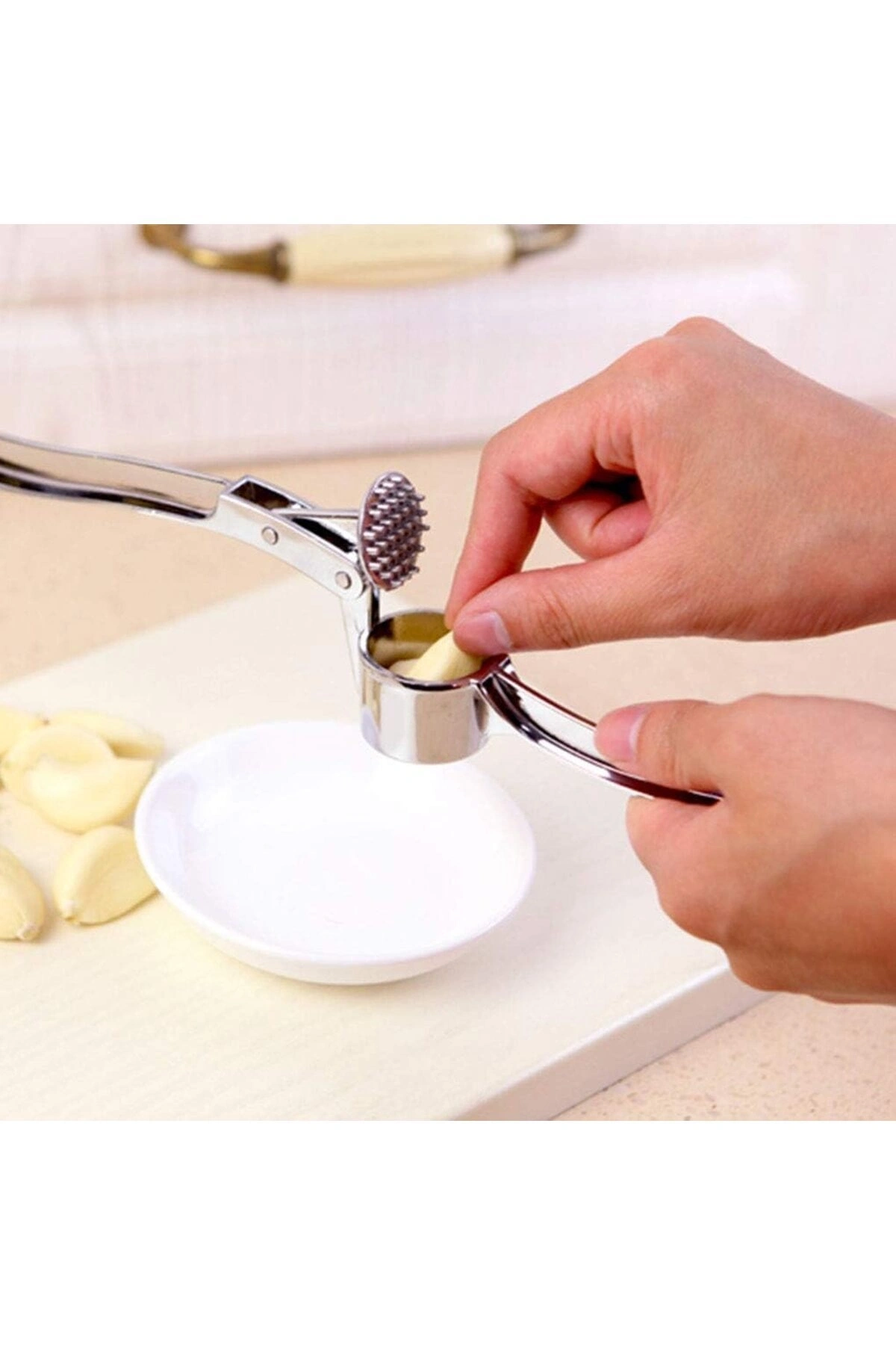 SARIMSAK EZME ALETİ RENDESİOldukça sağlam ömürlük bir üründür. Paslanmaya karşı dayanıklı çinko alaşım döküm.Temizlenmesi kolaydır, musluklarınızın altında bütün sarımsak parçaları gidene kadar durulayın, makinede yıkanabilir.Kompakt tasarım, taşıması kolay, mutfak önlüğünüzün ön ceplerinde rahatlıkla kendine yer bulabilir.Ürün Ölçüleri Boyut: 15*4 cm.Paket İçeriği1 adet sarımsak ezme aleti rendesi