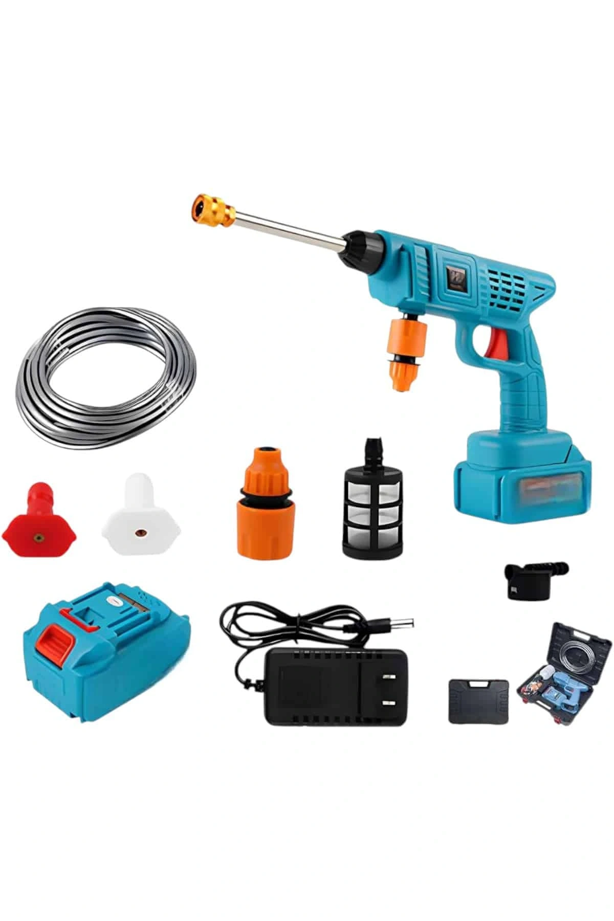 Güçlü 300W Motor ve Yüksek Basınç KapasitesiBu kablosuz yüksek basınçlı yıkama makinesi, 300W güçlü motoru ve maksimum 30 Bar (350 PSI) su basıncı ile, araba yıkama, bahçe sulama, tarımsal sulama ve genel temizlik işlemlerinde üstün performans sunar. Yüksek basınçlı su püskürtme özelliği, en inatçı kirleri bile kısa sürede temizleyerek zaman ve su tasarrufu sağlar. Ayrıca cihaz, aşırı sıcaklık ve aşırı yük koruma fonksiyonuna sahiptir. Bu sayede, cihazın aşırı ısınmasını önleyerek uzun ömürlü ve güvenli bir kullanım sağlar. Güçlü motor yapısı sayesinde uzun süreli ve kesintisiz temizlik işlemleri yapabilir, aracınızı, bisikletinizi veya dış mekan yüzeylerini rahatlıkla temizleyebilirsiniz.