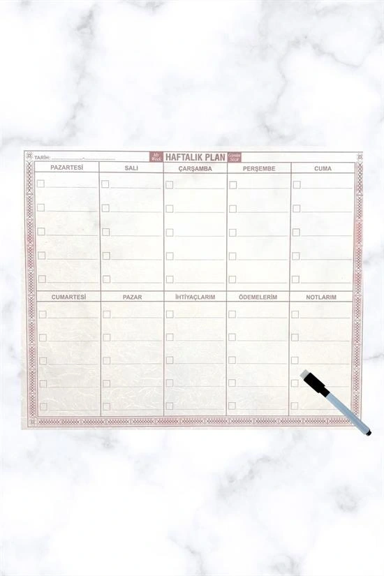 Şeffaf Kendiliğinden Yapışkanlı Kalemli Haftalık Planlayıcı 40cm-50cm