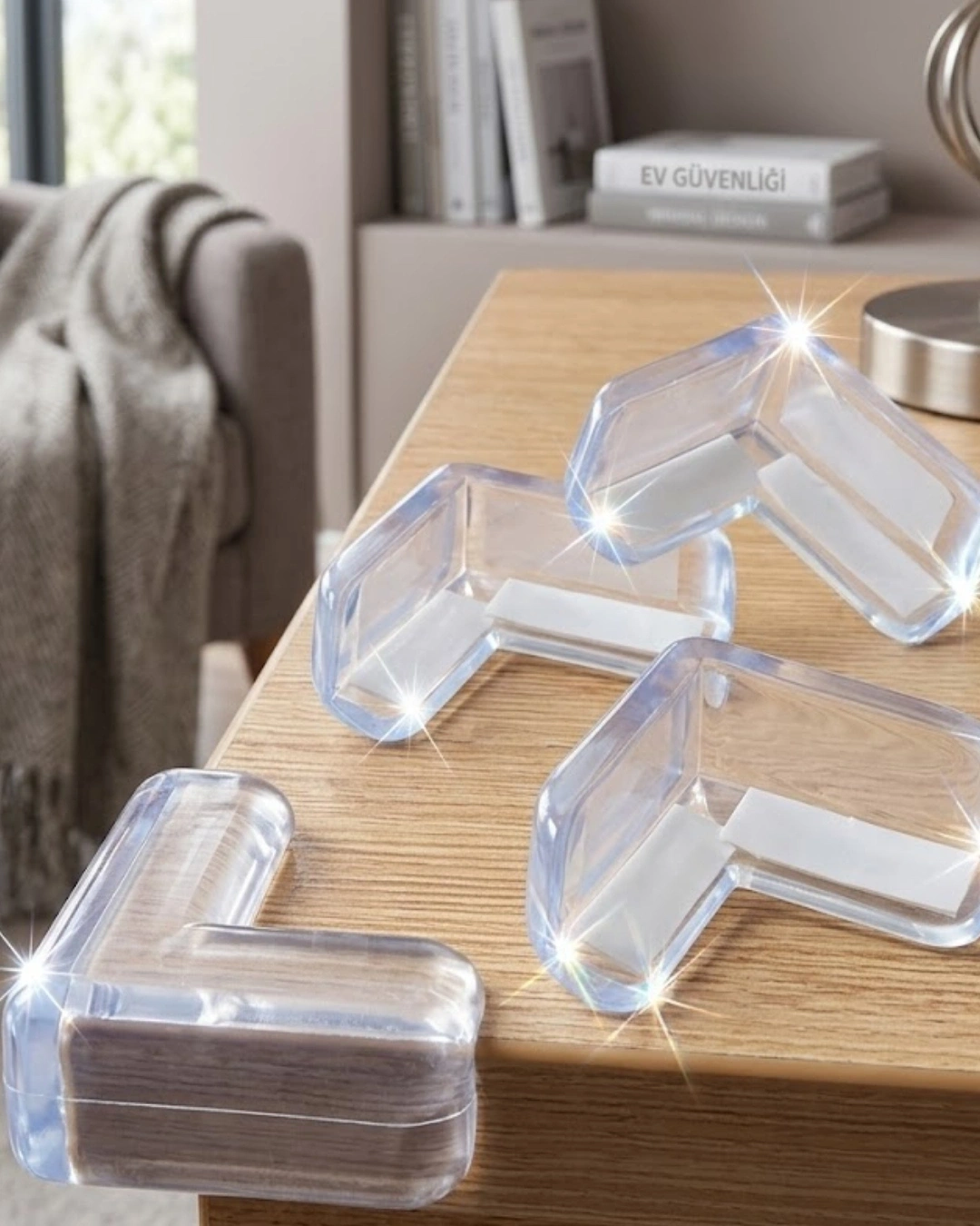 Şeffaf köşe koruyucu seti, evde bulunan masa, sehpa ve mutfak tezgahı gibi mobilyaların keskin köşelerini güvenli hale getirmek için tasarlanmış pratik bir güvenlik ürünüdür. Özellikle küçük çocukların bulunduğu evlerde olası çarpma ve yaralanma riskini azaltmaya yardımcı olur. Yumuşak silikon içerikli plastik materyalden üretilmiş olan köşe koruyucular darbe etkisini azaltarak güvenli bir kullanım sağlar. Şeffaf yapısı sayesinde mobilyanın görünümünü bozmaz ve dekorasyona uyum sağlar. Kolay montaj özelliği sayesinde masa ve mobilya köşelerine kısa sürede takılabilir. Yapıştırma yöntemi ile pratik şekilde sabitlenebilir ve ihtiyaç halinde kolayca çıkarılabilir.