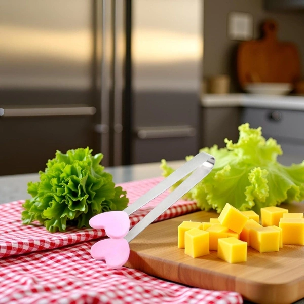 SEVİMLİ KALPLİ MAŞAÜrün ÖzellikleriSevimli kalpli maşa, mutfakta hem şık hem de pratik bir yardımcı olarak tasarlanmıştır. Paslanmaz çelik gövdesi ve silikon uçları sayesinde dayanıklı, güvenli ve uzun ömürlü bir kullanım sunar. Isıya dayanıklı yapısıyla yiyecekleri rahatça kavrayabilir, silikon uçları sayesinde yüzeylere zarar vermeden kullanım imkânı sağlar. 13 cm uzunluğu ve 2,8 cm genişliği ile kompakt boyutlarda olup, çerez, salata, pasta, ekmek ya da küçük atıştırmalıkları servis etmek için idealdir. Pembe kalp detaylarıyla estetik ve sevimli bir görünüme sahiptir. Temizlemesi son derece kolay olup elde veya bulaşık makinesinde yıkanabilir. Hem günlük kullanımda hem de özel sunumlarda mutfağınıza zarafet katar.Paket İçeriği1 adet Sevimli Kalpli Maşa