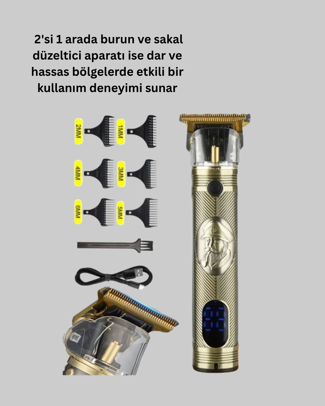 Bu saç ve sakal düzeltici set, farklı başlıklarıyla hem saç hem sakal kesimi için geniş kapsamlı çözümler sunar. T bıçaklı düzeltici başlık ile keskin hatlar oluşturabilir, kısa ve uzun taraklarla farklı saç stillerini kolayca uygulayabilirsiniz. Burun ve kulak düzeltici başlık, hassas bölgelerde temizlik sağlar. USB şarj özelliği ile taşınabilir ve pratik bir kullanım sunar.