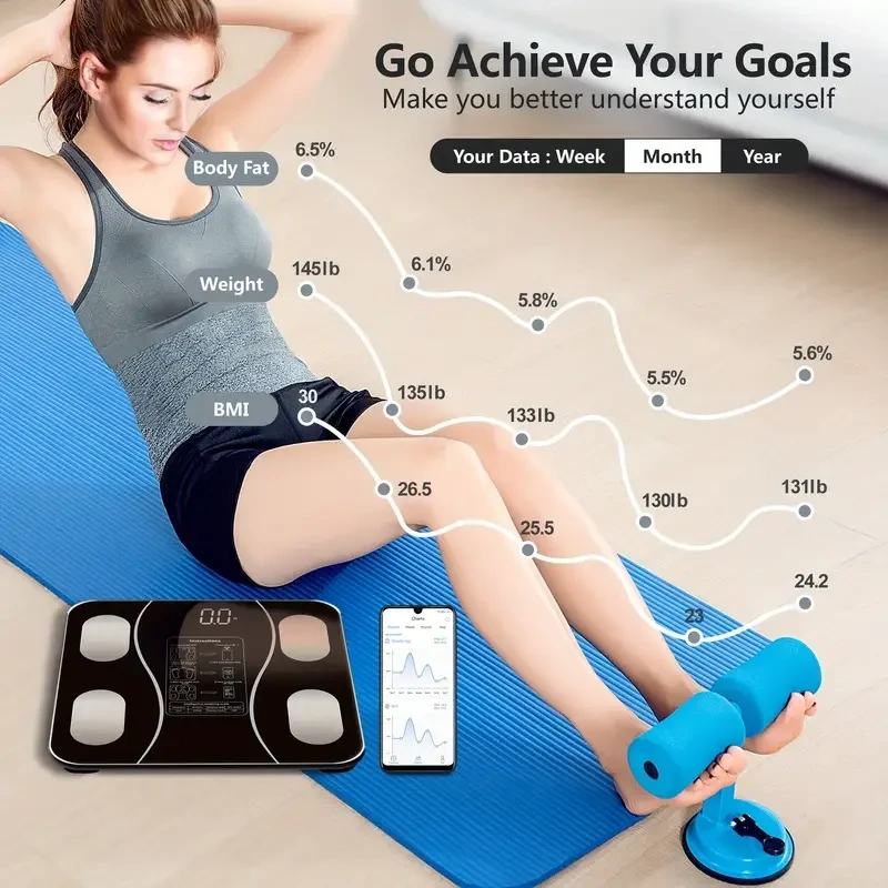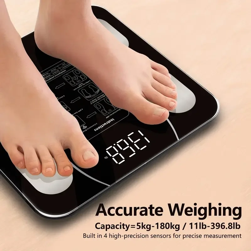 Kablosuz Vücut Tartısı, Yüksek Hassasiyetli Banyo Terazisi, Uygulama Bağlantılı LCD Ekran, kg/lbs/t Birim Değiştirme - Ev/Spor Salonu/Banyo İçin (Pil Dahil Değildir)