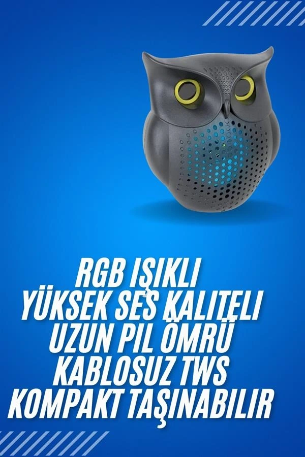 Modern ve sevimli tasarımıyla göz dolduran bu Bluetooth hoparlör, baykuş formundaki estetik yapısıyla bulunduğu ortama şıklık katarken, sunduğu güçlü ses performansıyla da fark yaratır. Kompakt boyutları ve sadece 350 gramlık hafifliği sayesinde ister evde ister dışarıda rahatlıkla taşıyabilir, dilediğiniz her an müziğin keyfini sürebilirsiniz. 5W çıkış gücüyle donatılan hoparlör, net ve bozulmadan yüksek ses kalitesi sunarak favori müziklerinizi en iyi şekilde deneyimlemenizi sağlar.Bluetooth 5.0 + EDR teknolojisi, hızlı ve kararlı bağlantı imkânı sunarak müzik akışında gecikme veya kesinti yaşamadan kesintisiz bir dinleme deneyimi sağlar. Ayrıca TWS (True Wireless Stereo) özelliği sayesinde iki hoparlörü eşleştirerek daha geniş bir ses alanı yaratabilir, etkileyici surround ses efektleriyle bulunduğunuz ortamı adeta bir konser alanına dönüştürebilirsiniz. 90Hz - 20kHz frekans aralığı ile tizden basa dengeli bir ses profili sunan bu ürün, 75dB sinyal-gürültü oranı sayesinde temiz ve berrak bir ses sağlar.Hoparlörün iç yapısında 4 inçlik sürücü bulunur ve bu sayede daha güçlü ses dalgaları oluşturur. 1200mAh kapasiteli dahili bataryası, uzun süreli kesintisiz kullanım olanağı sunar. USB ile kolayca şarj edilebilir yapısı, onu kablosuz müzik dinlemede vazgeçilmez hale getirir. Eğlenceli baykuş tasarımı, özellikle çocuk odaları, genç odaları ya da hediye alternatifleri için de şık bir seçenek sunar.İster piknikte, ister evde bir film gecesinde ya da arkadaşlarınızla açık hava buluşmalarında... Bu Bluetooth hoparlör, hem tasarımı hem de performansıyla yanınızdan ayırmak istemeyeceğiniz bir ses deneyimi sunar.