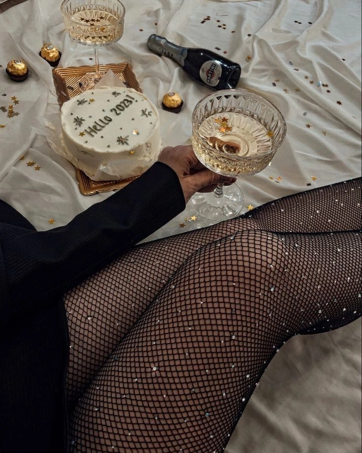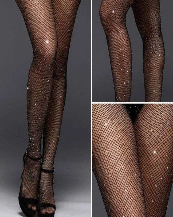 Taşlı Ağ Kısmı Açık Vücut Çorabı