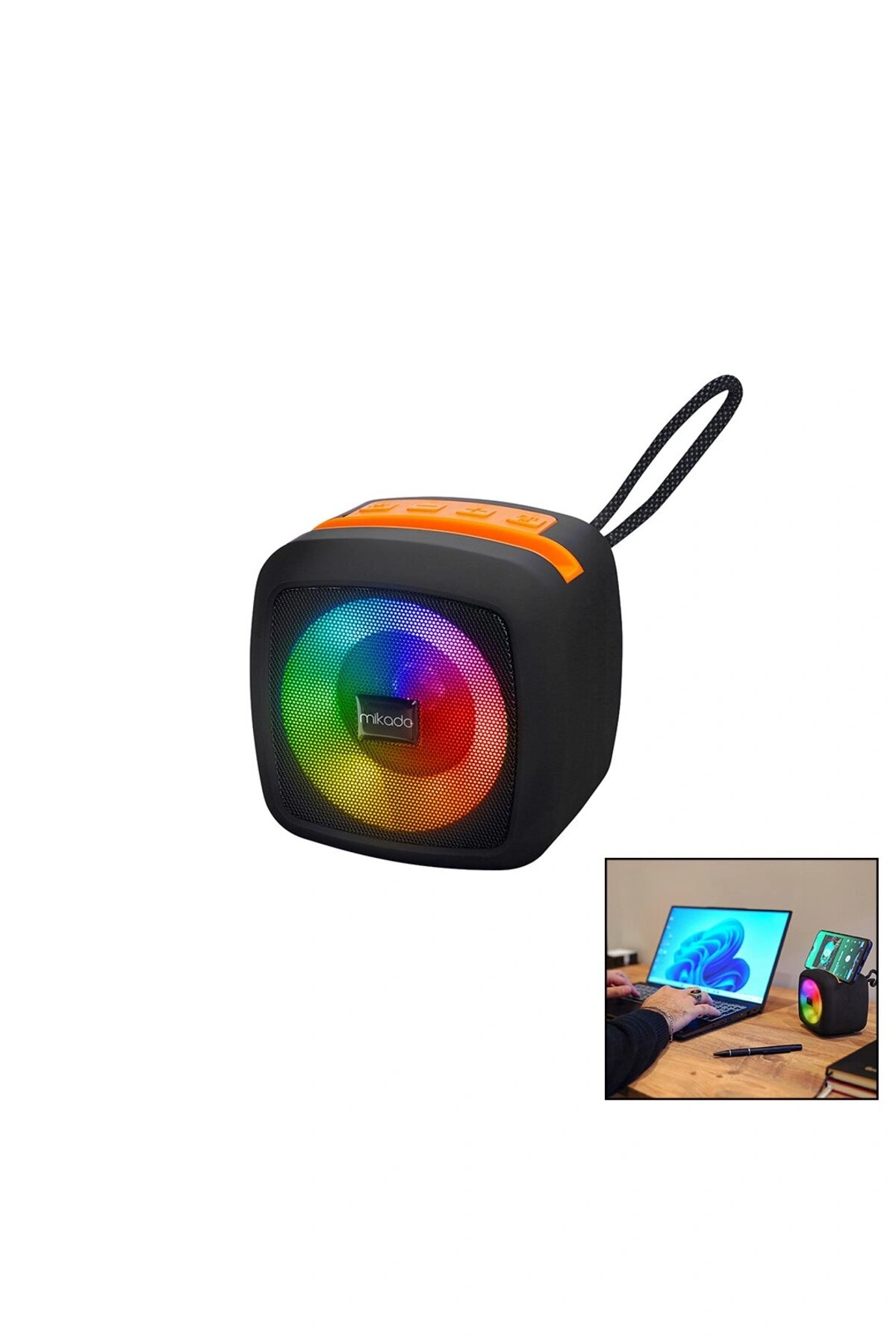 TURUNCU-BEYAZ KABLOSUZ HOPARLÖR - SPEAKER TAŞINABİLİR MP3 IŞIKLI USB ŞARJLI BT - AUX - TES 10 MT MEN