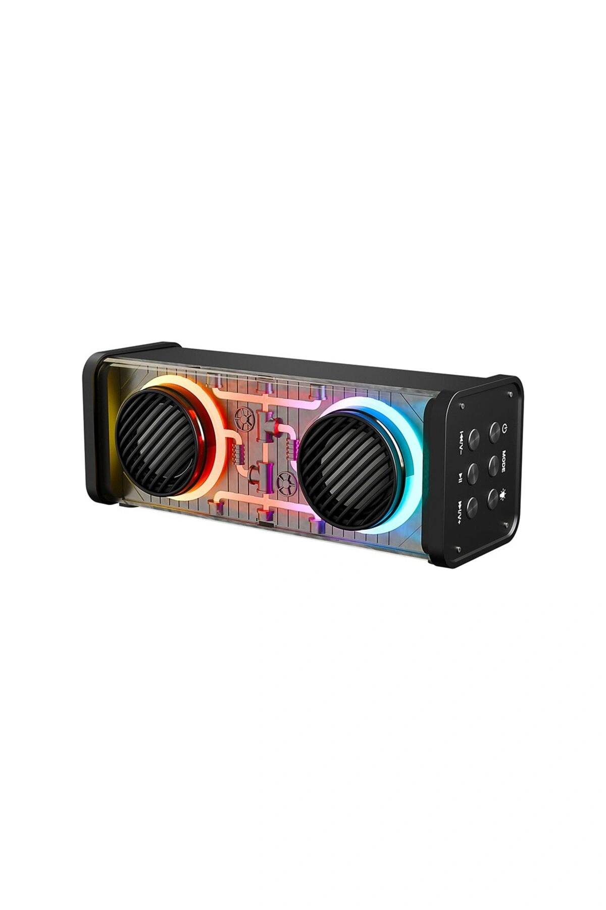 SİYAH KABLOSUZ HOPARLÖR - SPEAKER TAŞINABİLİR IŞIKLI USB ŞARJLI BT - TF CARD 10 MT MENZİL 1200mAH Pİ