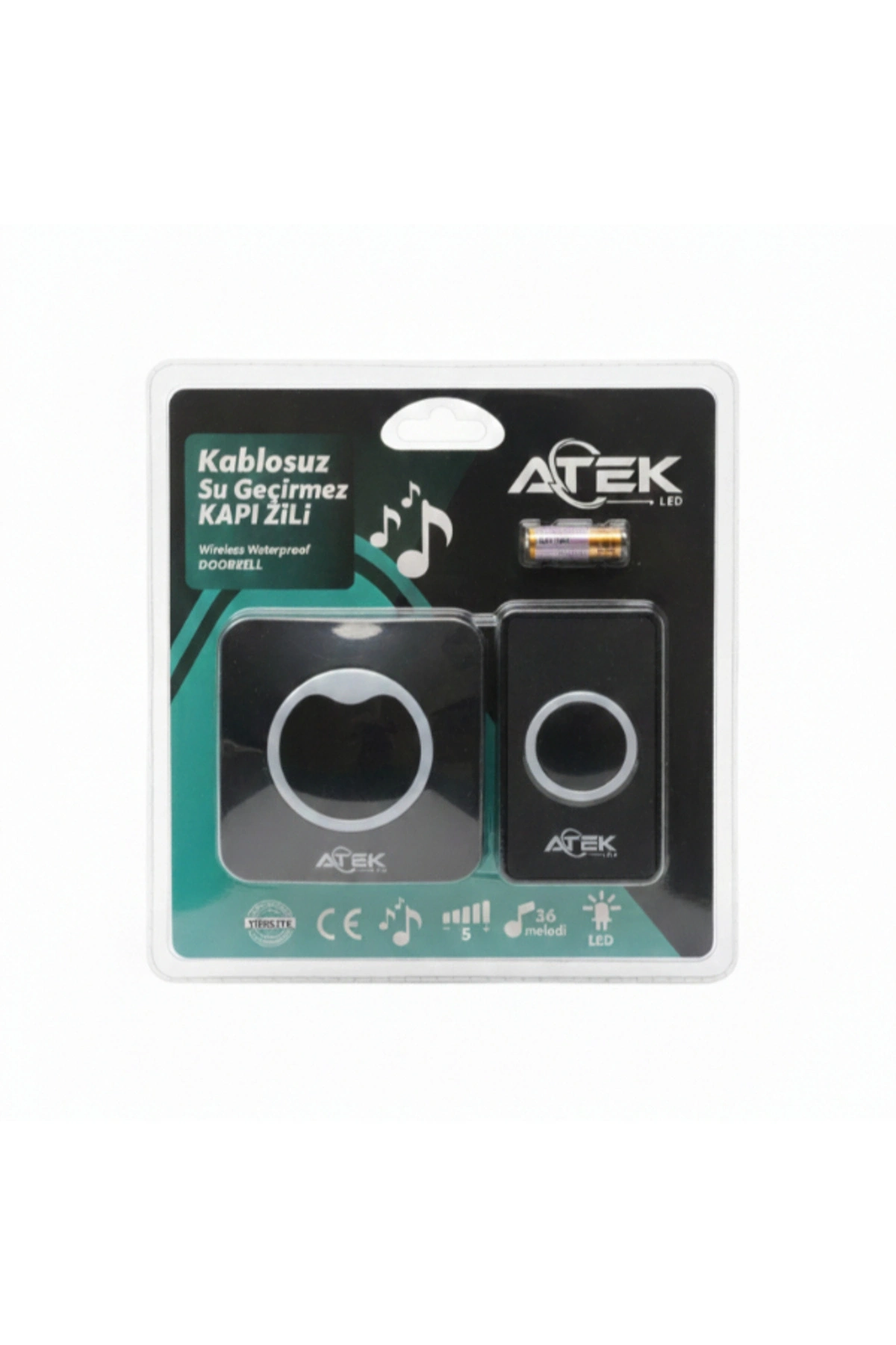 SİYAH KABLOSUZ SU GEÇİRMEZ KAPI ZİLİÜrün ÖzellikleriSiyah Kablosuz Su Geçirmez Kapı Zili, modern tasarımı ve yüksek performansı ile hem iç hem de dış mekânlarda kusursuz kullanım sağlar. Su geçirmez yapısı sayesinde dış kapılarda güvenle kullanılabilirken, LED ışıklı uyarı özelliği ile zil çaldığında görsel bildirim sunarak sesin duyulmadığı durumlarda bile fark edilir hale gelir. 36 farklı ayarlanabilir melodi seçeneği kullanıcıya özgür bir seçim imkânı sunar ve her ortama uyum sağlayacak bir kullanım deneyimi oluşturur. Kablo gerektirmeyen pratik montajı sayesinde kapı girişlerine, ofislere veya iş yerlerine saniyeler içinde kolayca uygulanabilir. Sessiz ve dayanıklı çalışma yapısı ile uzun süreli verimlilik sunan bu kablosuz zil, şık siyah rengiyle kapınıza modern bir görünüm kazandırır.Paket İçeriği1 adet Siyah Kablosuz Su Geçirmez Kapı Zili
