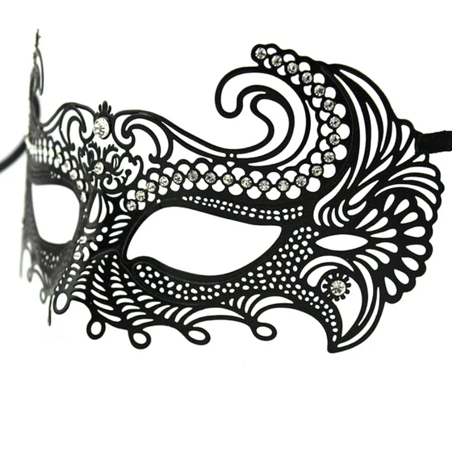 SİYAH LAZER KESİM KRİSTAL TAŞLI METAL VENEDİK MASKESİÜrün ÖzellikleriTasarım: Şık ve zarif siyah lazer kesim işlemeli metal maske.Malzeme: Dayanıklı ve hafif metal üzerine siyah kaplama.Süsleme: Işıltılı kristal taş detayları, göz alıcı bir görünüm sağlar.Boyut: Yetişkin yüz ölçülerine uygun standart boyut.Kullanım Alanı: Maskeli balolar, kostüm partileri, özel gün etkinlikleri ve temalı kutlamalar.Konfor: Yumuşak bağlama ipleriyle ayarlanabilir, uzun süre rahat kullanım.Özel Detay: Venedik maskesi tarzıyla estetik ve etkileyici bir aksesuar.Paket İçeriği1 Adet Siyah Lazer Kesim Kristal Taşlı Metal Venedik Maskesi