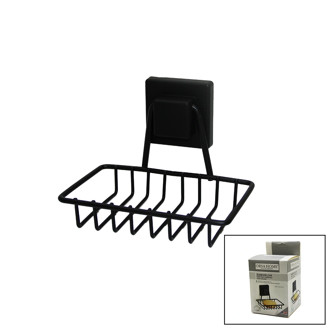 SİYAH - METAL KATI SABUNLUK KARE GÜÇLÜ YAPIŞKANLI 11X12.5X11CM