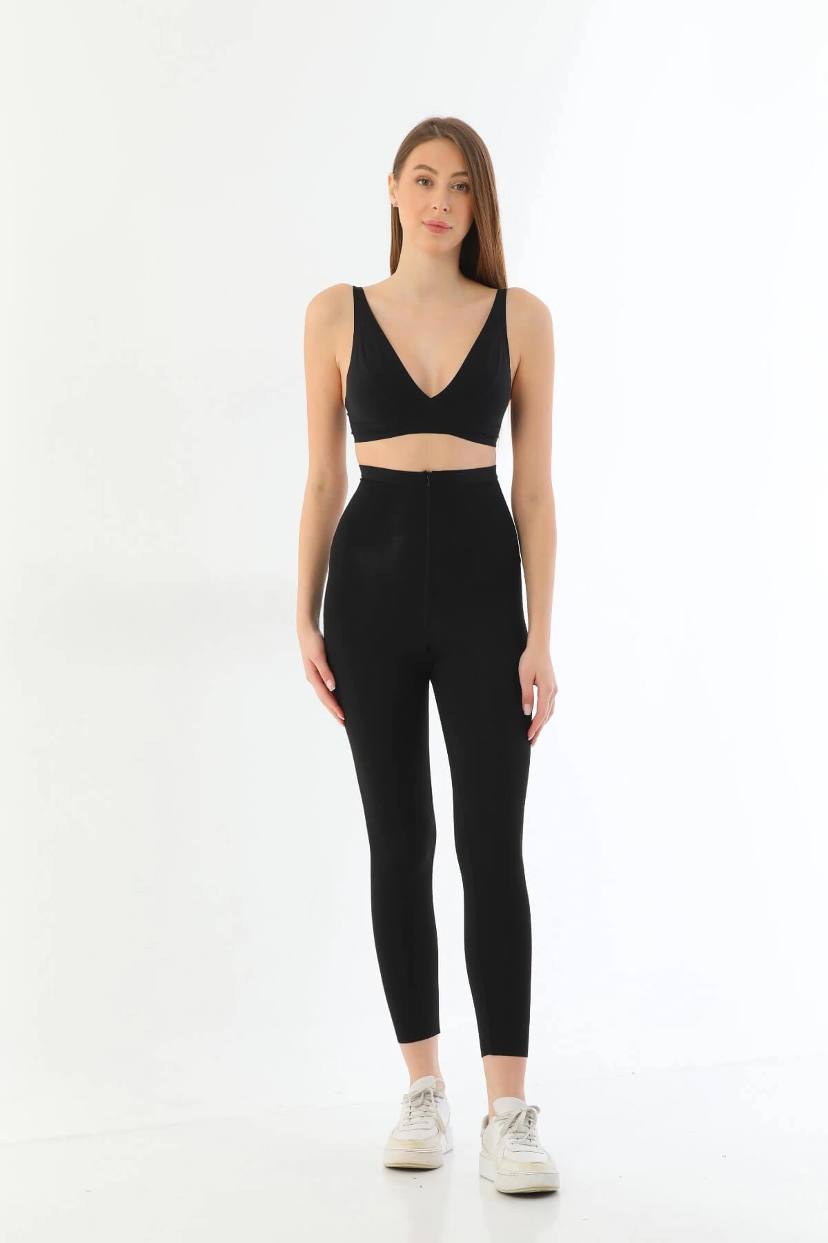 Ürün Adı | Siyah MI 2711 Lazer Kesim Fermuarlı Uzun Tayt |
