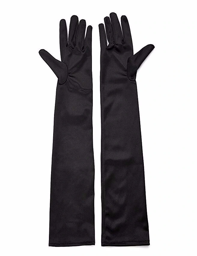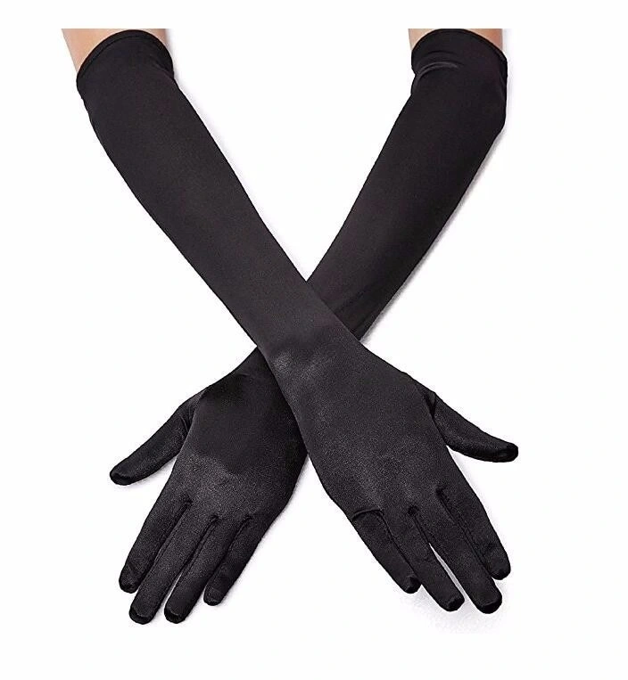 Siyah Renk Dirseğe Kadar Uzun Kumaş Eldiven (5324)