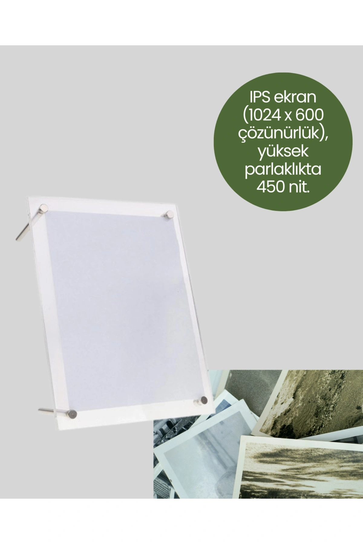 Fotoğraflarınızı sıradan çerçevelerde saklamak yerine teknolojiyle buluşturun! 7 inç IPS ekranlı dijital fotoğraf çerçevesi, 1024x600 çözünürlükte görüntü kalitesi ve 450 nit parlaklık ile anılarınızı capcanlı gösterir.; IPS panel teknolojisi sayesinde fotoğrafları hangi açıdan izlerseniz izleyin, renkler ve netlik aynı kalır.; 4 GB dahili belleği sayesinde geniş depolama alanı sunar.; USB Type-C bağlantı noktası ile hem şarj hem veri aktarımı hızlı ve güvenlidir.; Kullanımı kolay kontrol düğmeleriyle açma, kapama, ses ve oynatma ayarlarını rahatlıkla yapabilirsiniz.; Çift stereo hoparlör, videolarınıza eşlik eden güçlü ses performansı sağlar.; Slayt gösterisi modu, anılarınızı modern bir sunum haline getirir.; Evlerde dekoratif bir eşya, işyerlerinde prestijli bir sunum aracı ya da özel günlerde şık bir hediye olarak tercih edebilirsiniz.