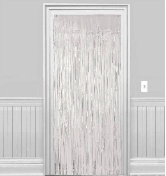 Parti organizasyonlarınızda sadece kapı değil duvar, perde gibi alanları da süsleyebileceğiniz Işıltılı Beyaz Püsküllü Perde.