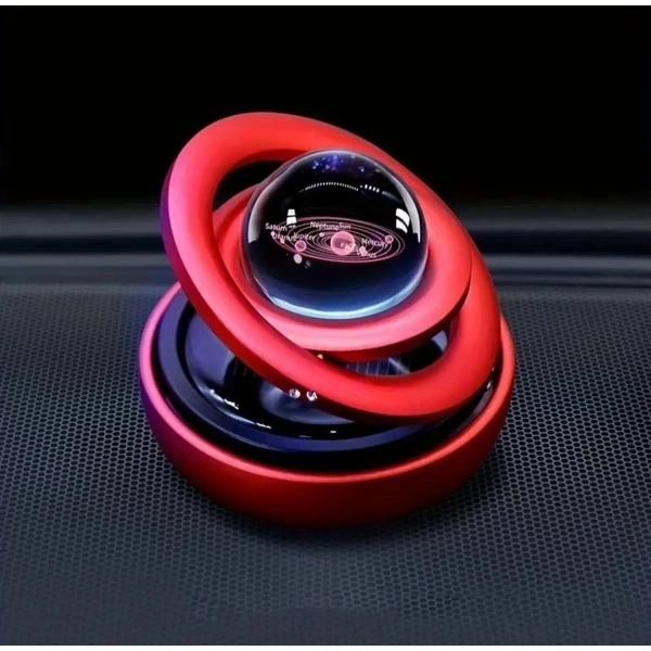 SOLAR 360° DÖNEN ARABA KOKUSUÜrün ÖzellikleriSolar 360° Dönen Araba Kokusu, hem görselliği hem de işlevselliğiyle dikkat çeker. Üst kısmında yer alan şeffaf kristal küre içerisinde 3D galaksi veya gezegen tasarımı yer alır. Ortam ışığıyla birlikte şık bir görünüm sunar. Küre etrafında dönebilen iki halka bulunur. Bu halkalar, dekoratif olarak tasarlanmış olup ürünün estetik değerini artırır. İç kısmına yerleştirilen aroma tableti veya sıvı esans sayesinde aracın içinde ferah bir koku yayılmasını sağlar. Güneş enerjisi sayesinde hareket ettiğinde kokunun daha hızlı dağılmasını sağlar. Hem evde masa üstünde dekoratif amaçla hem de araç içi parfüm olarak kullanılabilir. Kırmızı, siyah, altın, gümüş ve mavi gibi farklı metalik renklerde sunulur ve stok durumuna göre gönderilir. Paket İçeriği1 Adet Solar 360° Dönen Araba Kokusu