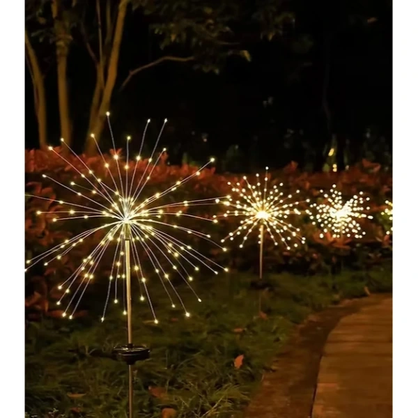 SOLAR HAVAI FİŞEK DEKOR LEDÜrün ÖzellikleriSolar havai fişek dekor LED, bahçenize ve dış mekânlarınıza estetik ve büyüleyici bir ambiyans kazandırmak için tasarlanmıştır. Esnek metal telleri sayesinde farklı şekiller verilebilir; çiçek, spiral ya da havai fişek tarzında dekoratif görünümler oluşturabilirsiniz. Gündüzleri güneş enerjisiyle şarj olan sistem, akşam karanlığında otomatik olarak yanarak ortamı aydınlatır.IP65 su geçirmezlik özelliği sayesinde yağmurlu ve karlı havalarda sorunsuz çalışır. Kabloya ihtiyaç duymadan, doğrudan toprağa saplanarak kolayca kurulabilir. Enerji tasarruflu yapısı ve şık görünümüyle bahçeler, yürüyüş yolları, teraslar ve balkonlar için ideal bir aydınlatma çözümüdür.Paket İçeriği1 adet Solar Havai Fişek Dekor LED