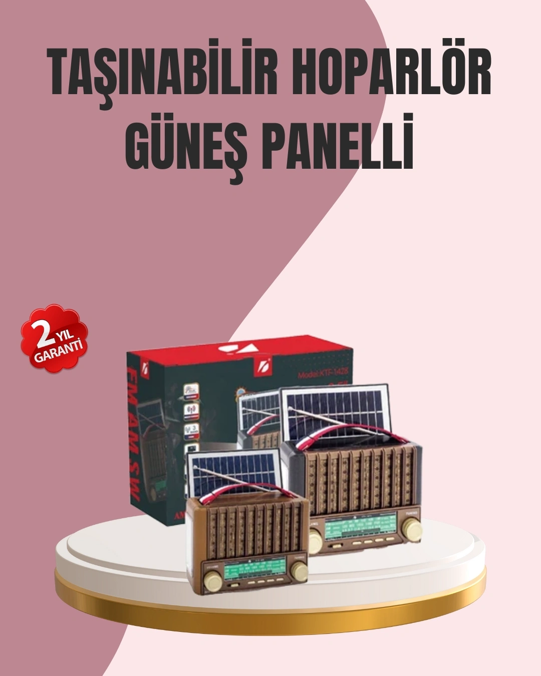 Solar şarj destekli taşınabilir radyo ve hoparlör, retro tasarımıyla dikkat çekerken modern multimedya çözümleriyle fonksiyonel bir kullanım sunar. Üzerindeki solar panel sayesinde güneşten enerji alarak kendi kendine şarj olabilir. Elektrik olmayan ortamlarda büyük kolaylık sağlayarak kamp, doğa yürüyüşü, piknik gibi aktivitelerin vazgeçilmez cihazı hâline gelir.AM/FM/SW üçlü radyo sistemi geniş kapsama alanı sayesinde net ve güçlü radyo sinyali sağlar. Klasik radyo kültürünü yaşatırken modern komponentlerle desteklenen bir radyo deneyimi sunar. Radyo çekim gücü yüksek olduğu için şehir içinde de kırsal bölgelerde de başarılı performans gösterir.Bluetooth teknolojisiyle telefonlardan kablosuz müzik aktarımı yapılabilir. USB, SD ve TF kart girişleri sayesinde harici belleklerden doğrudan müzik çalabilir. AUX bağlantısı ile eski cihazlardan müzik aktarma imkânı da vardır. Böylece çoklu medya desteği sayesinde müzik keyfi her yerde devam eder.Hoparlör güçlü ses çıkışına sahiptir ve dış mekânlarda bile ses performansını korur. Gövdesi dayanıklı malzemeden üretilmiş olup taşıma kulbu ile kolay taşınabilir. Kompakt yapısı sayesinde her ortama uyum sağlar.Şarj edilebilir aküsü uzun süre kullanım sunar. Solar panel sayesinde enerji sorunu yaşamadan saatlerce radyo ve müzik keyfi yaşanabilir. Kampçılar, doğa severler ve müzikten vazgeçemeyen kullanıcılar için ideal bir çözümdür.