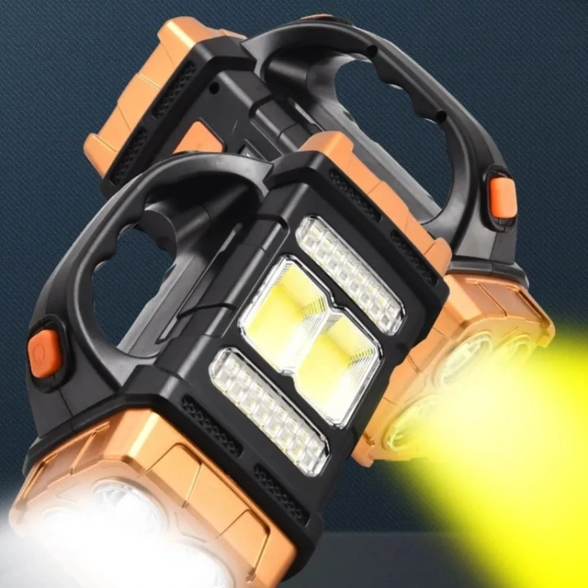 Solar ve USB Şarjlı LED + COB El Feneri | 1500 mAh Şarjlı Taşınabilir Çalışma Işığı-Su Geçirmez