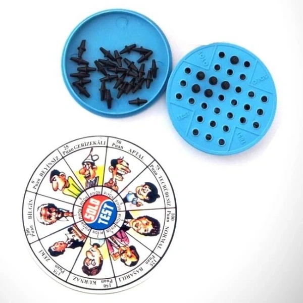 SOLO TESTÜrün ÖzellikleriSolo Test, 7’den 70’e herkesin keyifle oynayabileceği klasik bir zeka oyunudur. Oyunda amaç, tahtadaki taşları belirli kurallara göre hareket ettirerek tek bir taş kalmasını sağlamaktır. Strateji geliştirme, mantık yürütme ve problem çözme becerilerini geliştirmeye yardımcı olur. Hafif ve taşınabilir yapısı sayesinde evde, okulda veya seyahatte kolayca oynanabilir. Hem çocuklar hem de yetişkinler için eğlenceli vakit geçirmenin yanı sıra zihinsel gelişime katkı sağlar.Paket İçeriği1 adet Solo Test