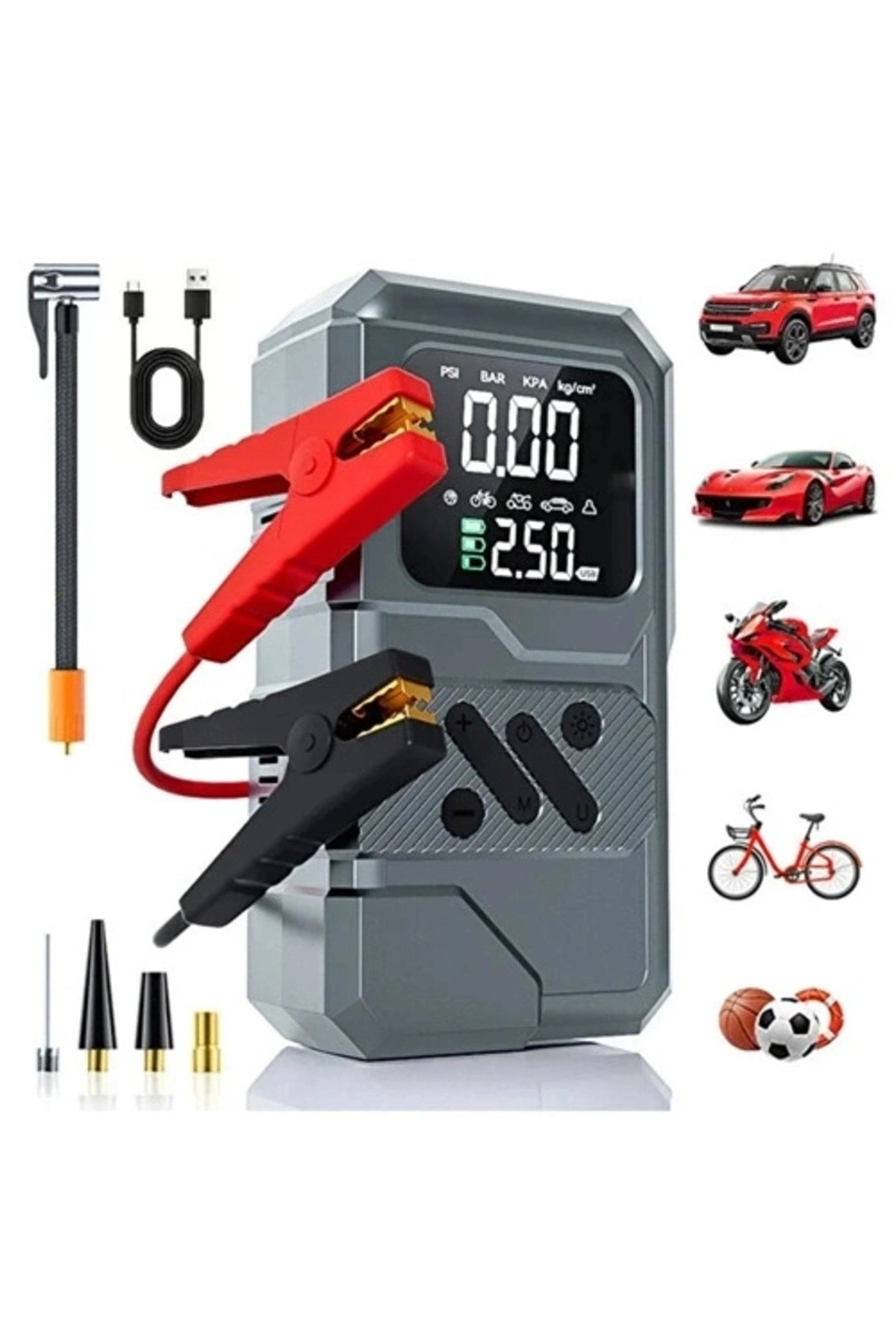 ST-9654 Şarjlı 10.000 mAh Taşınabilir Araç Hava KompresörüAkü Takviyeli • Dijital Ekranlı • LED Işıklı • Powerbank ÖzellikliYolda kaldığınız anlarda en büyük yardımcınız ST-9654 Taşınabilir Hava Kompresörü ve Akü Takviye Cihazı, tek bir cihazda birden fazla fonksiyonu bir araya getirerek hem güvenli hem de pratik bir çözüm sunar.; Akü Takviye (Jump ter)Aracınızın aküsü bittiğinde harici araca ihtiyaç duymadan çalıştırmanıza yardımcı olur.; Güçlü 10.000 mAh bataryası sayesinde acil durumlarda güvenle kullanabilirsiniz.; Dijital Hava KompresörüLastik basıncınızı kolayca ayarlayınDijital ekran ile anlık basınç takibiOtomatik durma özelliğiAraç, motosiklet, bisiklet, top ve şişme ürünler için uygunLED El FeneriGece kullanımı ve acil durumlar için güçlü LED aydınlatma.; Kamp, yol yardım ve karanlık ortamlarda idealdir.; Powerbank ÖzelliğiUSB çıkışı sayesinde telefon, tablet ve diğer elektronik cihazlarınızı şarj edebilirsiniz.; Teknik ÖzelliklerBatarya Kapasitesi: 10.000 mAhDijital Basınç GöstergesiAkü Takviye ÖzelliğiLED AydınlatmaUSB Çıkış (Powerbank)Taşınabilir, kompakt ve dayanıklı tasarımKutu İçeriğiST-9654 Taşınabilir KompresörAkü Takviye KablolarıHava Hortumu ve AparatlarUSB Şarj KablosuTaşıma Çantası