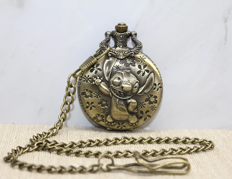 STITCH TASARIMLI KÖSTEKLİ SAATÜrün ÖzellikleriSevilen Stitch karakteri ile tasarlanmış bu köstekli saat, vintage bronz rengi ve zarif işçiliğiyle hem koleksiyon hem de günlük kullanım için idealdir. Saat kapağında detaylı Stitch figürü bulunmakta olup, iç kısmında klasik analog mekanizma yer almaktadır. Uzun zinciri sayesinde kolayca taşınabilir ve nostaljik bir aksesuar olarak kullanılabilir.Paket İçeriği1 Adet Stitch Karakter Baskılı Köstekli Saat