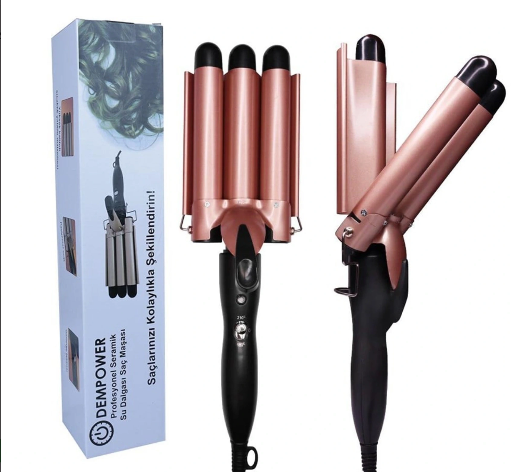 SU DALGALI SAÇ MAŞASI Su dalgalı saç maşası, seramik kaplaması sayesinde saçınıza zarar vermeden etkili bir şekilde şekillendirme sağlar. Hızlı ısınma özelliği, kısa sürede kullanıma hazır olmanızı sağlar. İki farklı ısı ayarı için ayrı düğmeleri bulunmaktadır, böylece kullanıcılar saç tipine uygun sıcaklığı seçebilirler.Ergonomik tasarımı, kullanıcıların rahat bir şekilde tutmalarına ve saçlarını istedikleri gibi şekillendirmelerine olanak tanır. Açma kapama tuşu ile kullanımı kolaydır. Su dalgalı saç maşası, saçınıza doğal ve güzel dalgalar kazandırmak isteyenler için ideal bir seçenek sunar.Paket İçeriği1 adet su dalgalı saç maşası