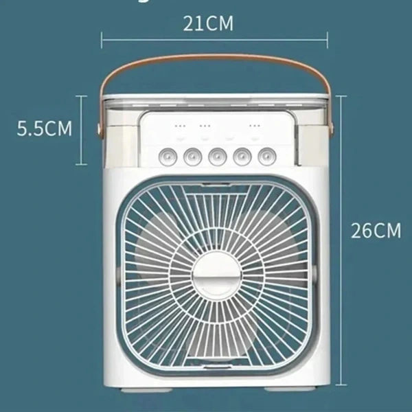 SU HAZNELİMASA VANTİLATÖRÜÜrün Özellikleri21 cm genişliğinde, 26 cm yüksekliğinde ve 5.5 cm derinliğinde olan su hazneli masa vantilatörü, hem serinletici hem de nemlendirici özelliğiyle yaz aylarında ferah bir ortam sunar. Üst kısmındaki 600 ml kapasiteli su haznesi musluk suyu ile doldurulabilir, istenirse buz da eklenerek daha serin bir etki elde edilebilir. Aynı anda 5 noktadan buhar püskürtme fonksiyonu ile geniş alanlarda etkili nemlendirme sağlar. 1 sprey ile 12 saat, 3 sprey ile 4 saat ve 5 sprey açıkken 2.5 saat kesintisiz çalışır. Taşıma sapı sayesinde kolayca taşınabilir. USB kablo ile çalışır ve farklı iç mekânlarda kullanıma uygundur. Klima gibi kuru hava yaratmaz, ortamın nem dengesini korur. Özellikle ev, ofis, yatak odası ve bebek odası gibi alanlarda tercih edilir.Paket İçeriği1 Adet Su Hazneli masa Vantilatörü