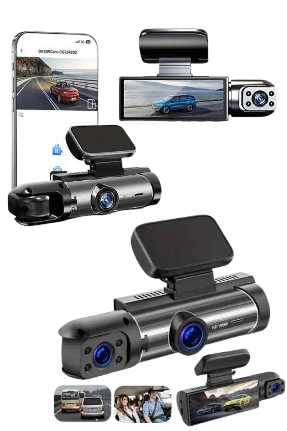 Sürüş güvenliğini artırmak ve yolculuk anılarını detaylı bir şekilde kayıt altına almak isteyenler için tasarlanan bu araç içi kamera, gelişmiş teknik özellikleri ve kullanıcı dostu yapısıyla öne çıkar. Full HD 1080P çözünürlüğünde görüntü kaydı yapabilen ön kamera, yolda karşılaşabileceğiniz her ayrıntıyı net şekilde belgeleyerek güvenilir bir kayıt sunar. Arka ve iç mekan kameraları da sistemi tamamlayarak çok yönlü bir izleme deneyimi sağlar. Böylece aracın hem dış hem de iç ortamı aynı anda kaydedilir.G sensörü özelliği sayesinde, ani sarsıntı ya da kazalarda otomatik olarak devreye girerek o anki görüntüleri özel olarak koruma altına alır ve üzerine yazılmasını önler. Hareket algılama fonksiyonu ise araç park halindeyken dahi güvenliği sürdürür; araç çevresinde şüpheli bir hareket algılandığında kayıt otomatik olarak başlatılır. Gece görüş desteği ile düşük ışıklı ortamlarda bile net kayıtlar alınabilir, bu da gece sürüşlerinde ekstra güvenlik sağlar.64 GB’a kadar hafıza kartı desteği sayesinde uzun süreli çekimler yapılabilirken, döngüsel kayıt özelliği eski görüntülerin otomatik silinerek yenileriyle değiştirilmesini sağlar. Bu sayede bellek dolduğunda manuel işlem yapmanıza gerek kalmaz. Cihazın ergonomik tasarımı, sürücünün görüş alanını kısıtlamadan rahat bir kullanım sunar. Kutu içeriğinde yer alan araç şarj cihazı, sabitleyici aparat ve kullanım kılavuzu ile kurulum işlemleri hızlı ve zahmetsiz şekilde tamamlanır. Hem şehir içi kullanımlar hem de uzun yolculuklar için ideal olan bu araç kamerası, sürüşlerinizi daha güvenli ve kontrollü hale getirir.