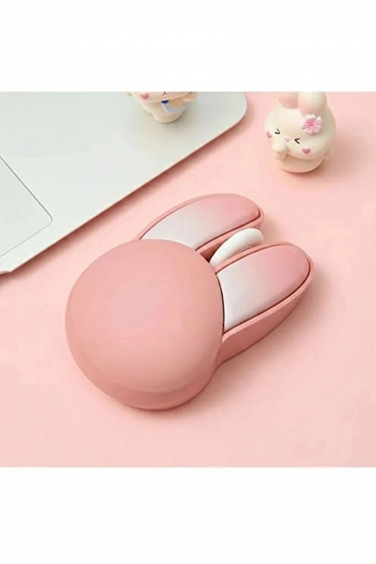 Tavşan Figürlü Kablosuz Mouse Pil Dahil Etiket Hediyeli Pembe