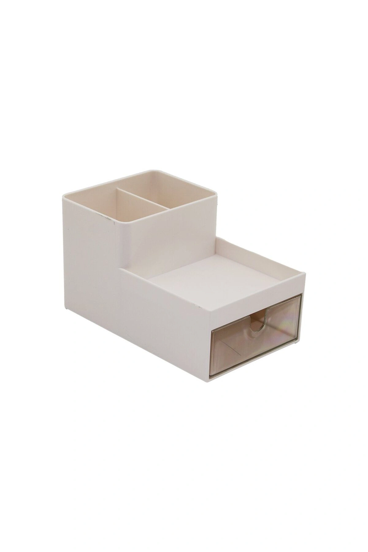 TEK ÇEKMECELİ + 3 BÖLMELİ PLASTİK MAKYAJ - TAKI ORGANİZER 16X9.5CM - Y: 5--9.5CM