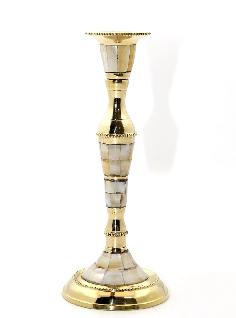 Pirinç Ve Sedef Karışımdan Üretilmiştir. Tekli Pirinç Sedefli Şamdan 20 Cm