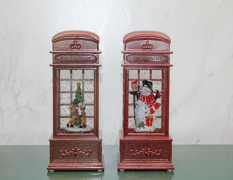 Telefon Kulübesi Tasarımı Yılbaşı Temalı Işıklı Müzikli Kar Küresi Alk3209